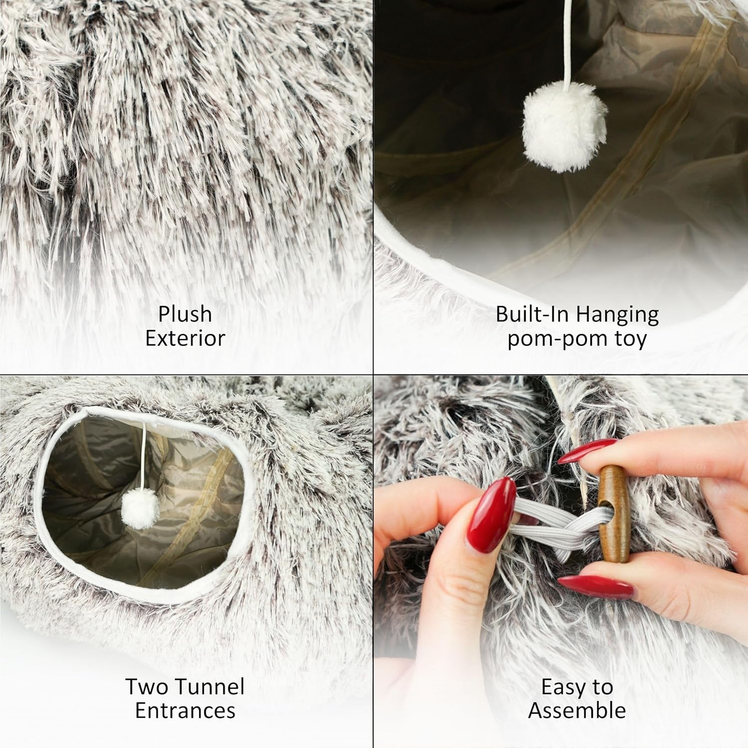 • COZY HIDEAWAY AND PLAYFUL DESIGN: Plush enclosed nook with dangling pom-pom toy creates a secure retreat in your MODAELITE cat tunnel bed or cat tunnels for indoor cats, doubling as a luxurious cat bed