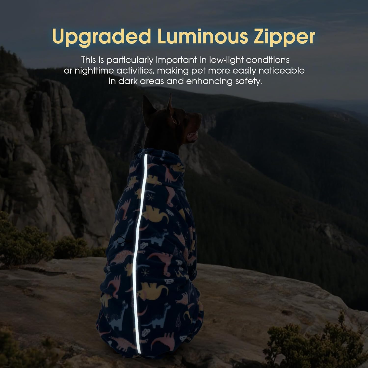 ROZKITCH Dog Clothes for Large Dogs Soft Fleece Pullover Pajamas, Pet Windproof Warm Cold Weather Jacket Vest with Reflective Zipper, Jumpsuit Apparel Outfit Clothes for Large Dog Dinosaur 2XL