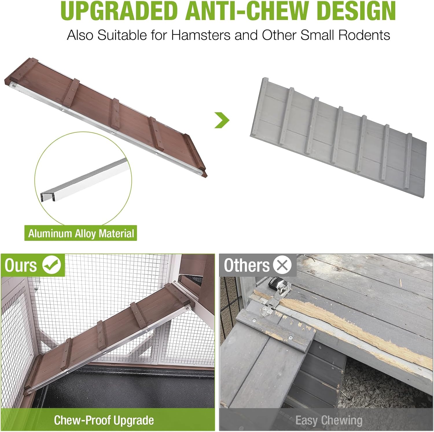 • Sturdy & Chew-Resistant Build: Constructed with solid wood and reinforced aluminum alloy framing, this hutch withstands chewing, weather damage, and wear for long-lasting protection. Ideal for active rabbits, guinea pigs, and small pets.
