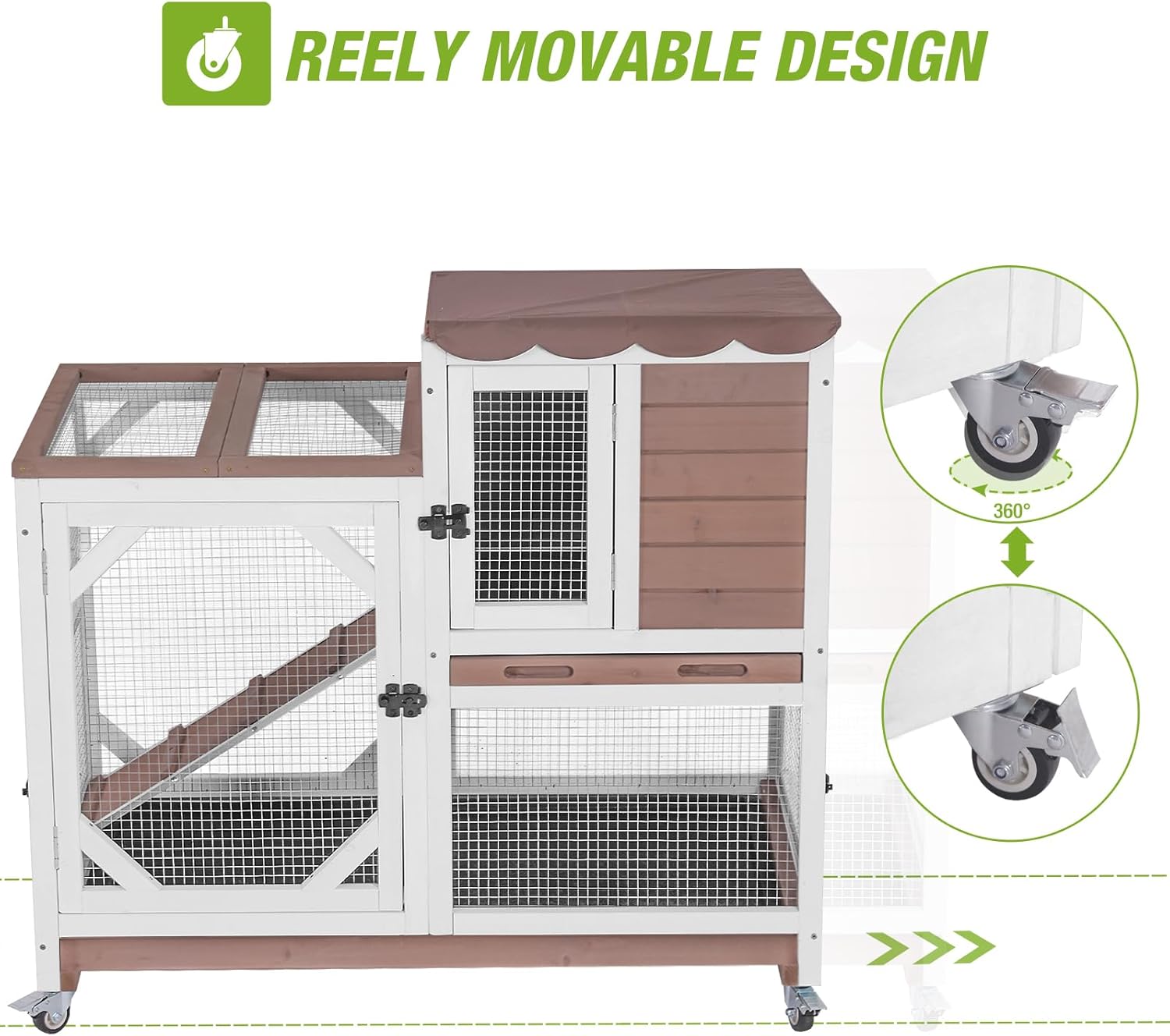 • Leak-Proof Easy-Clean Trays: Includes two deep, removable trays to prevent leaks and simplify cleanup. Maintains a dry, odor-free habitat for your bunny or small animals.
