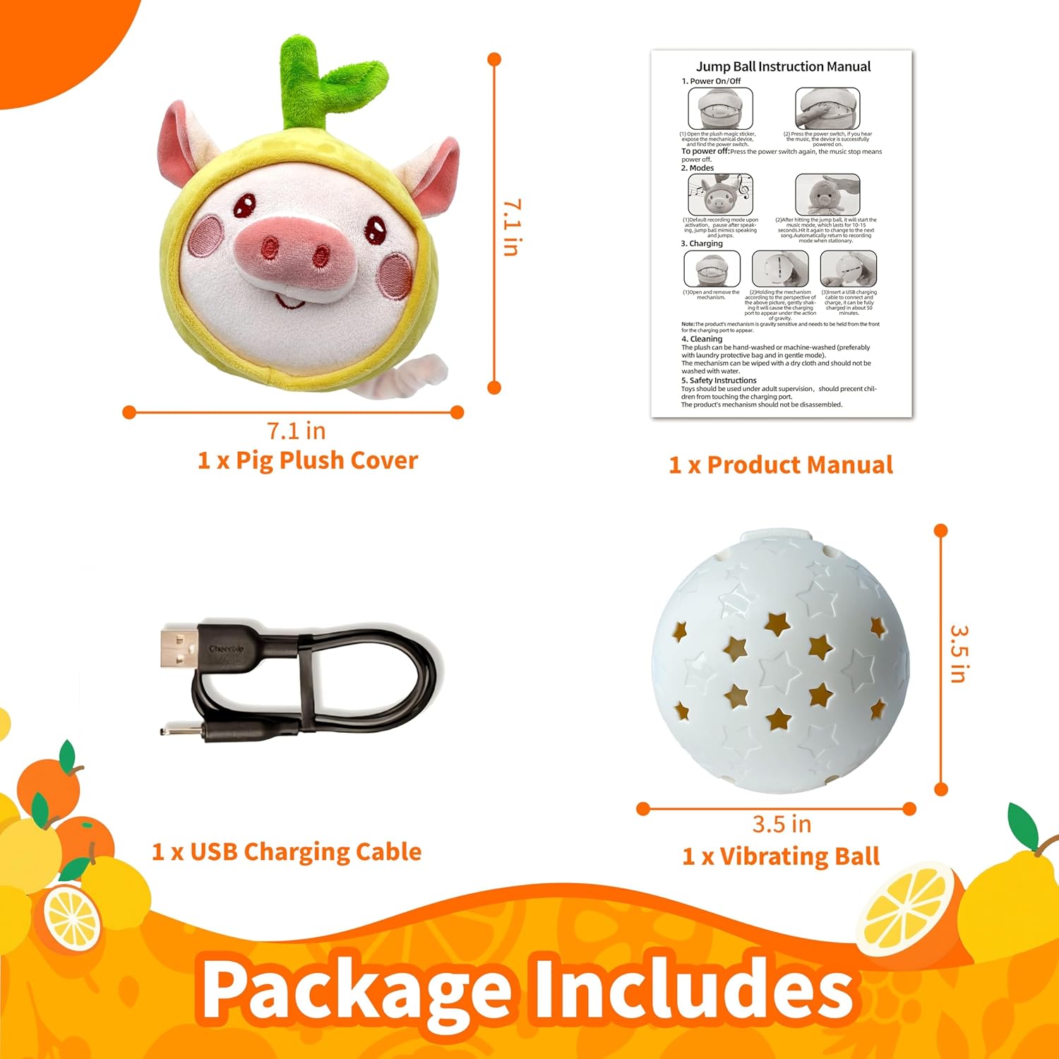 Interactive Dog Toys, Moving Squeaky Dog Toy Ball, Rechargeable Bouncing Rolling Puppy Ball Toy with Jumping Music Talking Mode for Puppy Small Medium Dogs to Keep Them Busy (Pig)