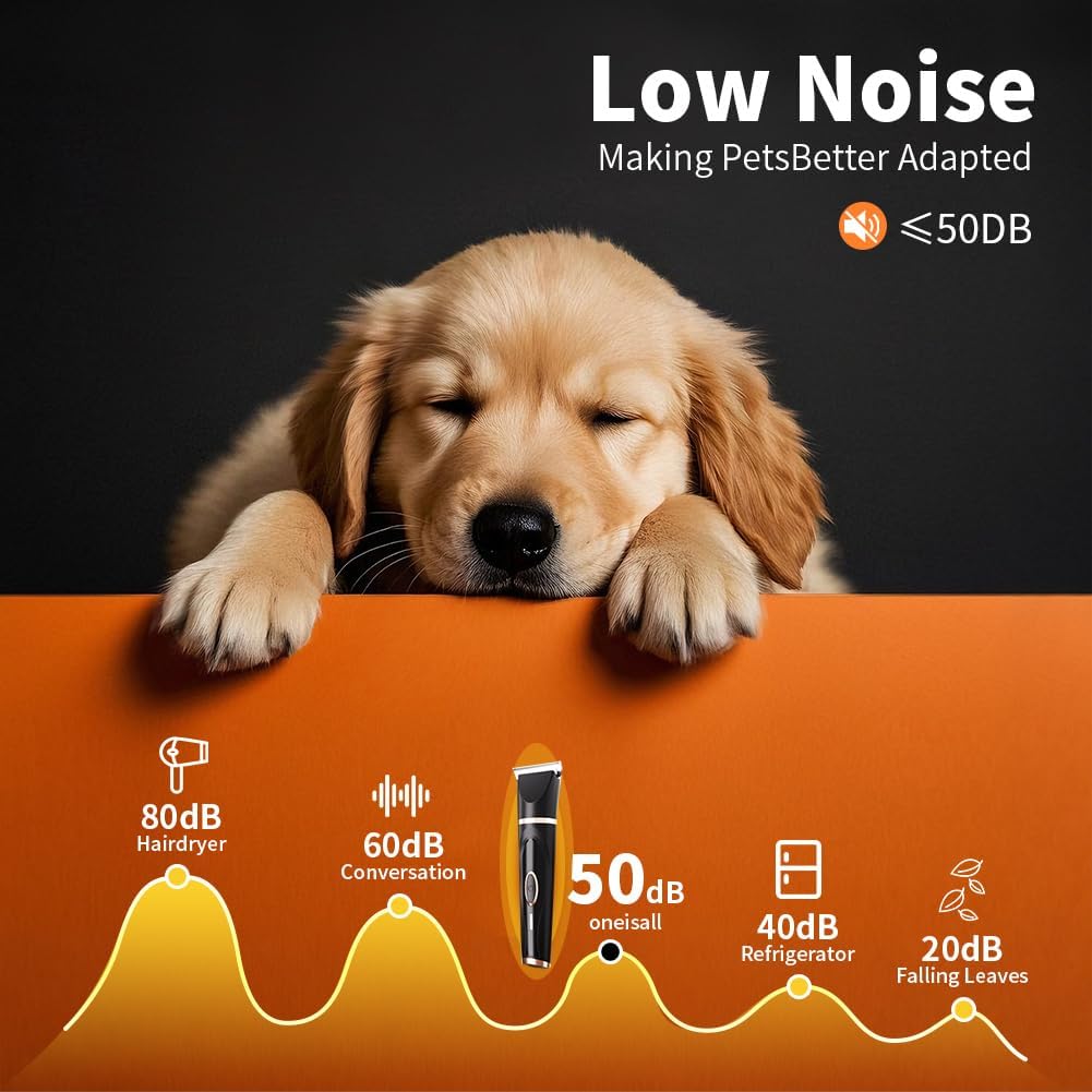 Dog Clippers Grooming Kit with Paw Trimmer, 3 in 1 Low Noise Electric Rechargeable Cordless Pet Shaver with Nail Grinder Dog Hair Trimmer for Dogs Cats and Other Pets