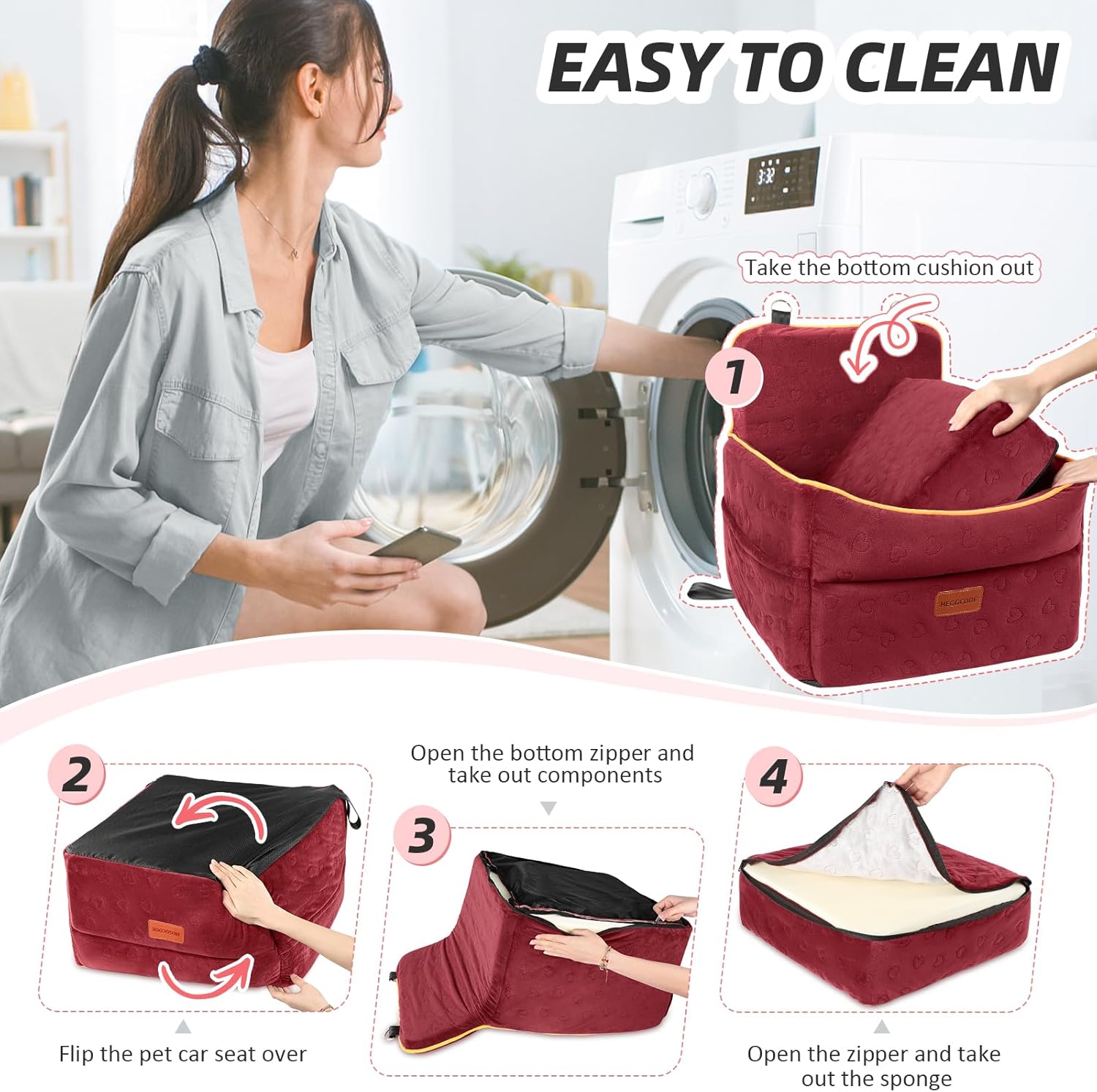 • Multi-functional Use: The small dog car seat is not only suitable for vehicles, but can also be used as a dog bed at home, outdoors or in a tent, providing your dog with a comfortable resting space anwhere. It has a removable and washable cover, simply open the zipper and take out the sponge to clean the cover. Please note that the inner sponge is not washable
