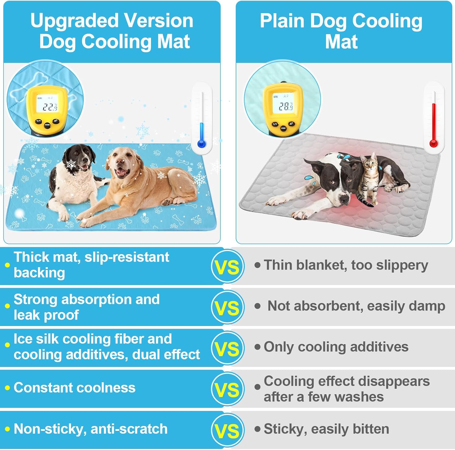 • Elaborate Design-- The inner layer of the mat had water absorption material to stay dry, urine and odor control. Besides, our summer dog sleeping pad is extremely breathable. Excellent craftsmanship can ensure self-cooling pet mat is durable enough and chew proof. It's also could be used as a pet pee pad or feeding mat.