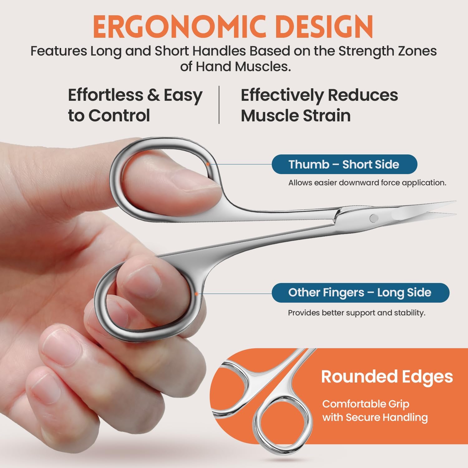 • Medical-Grade Precision Curved Nail Scissors: Features an ultra-fine 0.1cm tip for surgical-level precision. The curved blade contours naturally to the skin, allowing safe and accurate trimming without the risk of nicks