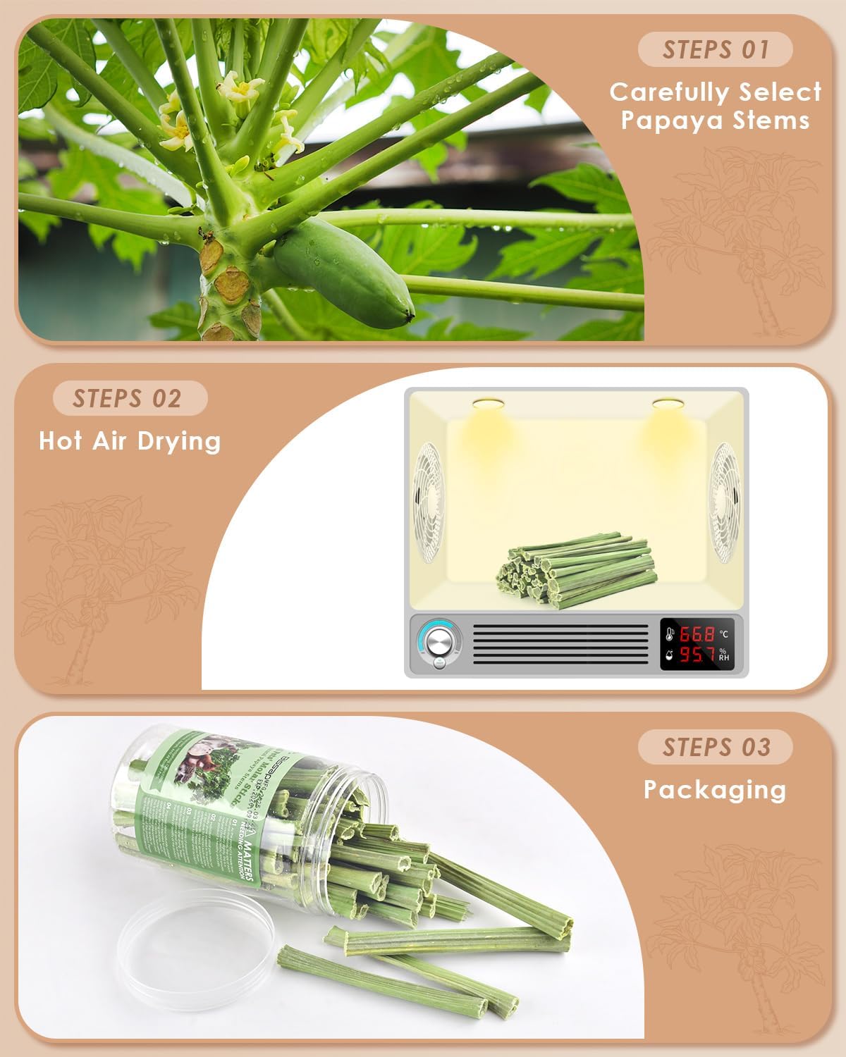 • Natural Organic Materials: 100% natural papaya stem, rich in dietary fiber, xylose, vitamin A&C, low in calories, help digestion, no additives, harmless to your pet. Please be careful not to overfeed your pets, preferably 1 or 2 a day, or every 2 to 3 days