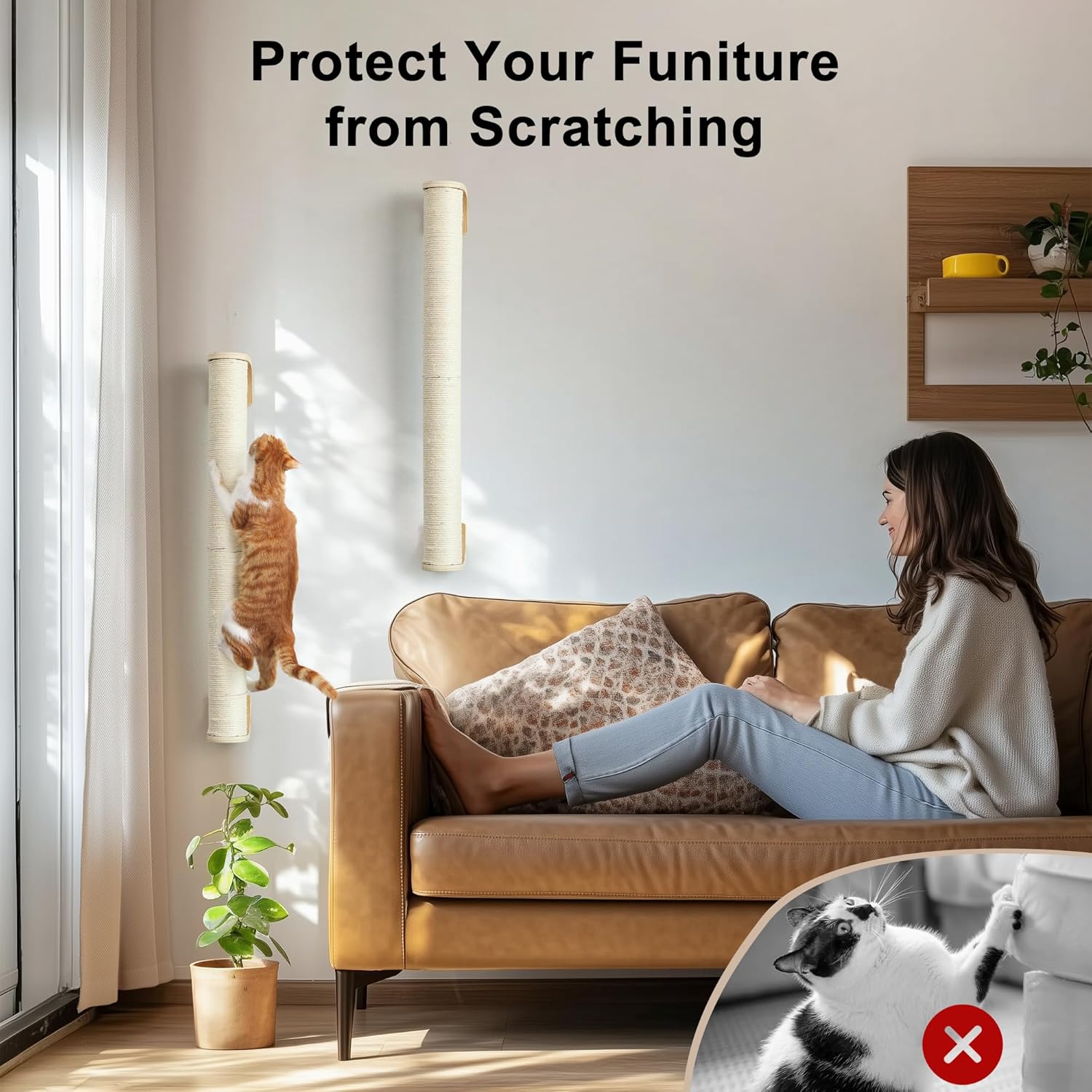 • Space-Saving Design - The cat wall scratch post fits perfectly in tight spots like door frames, window corners, or beside sofas—create cat wall playground while freeing floor space.