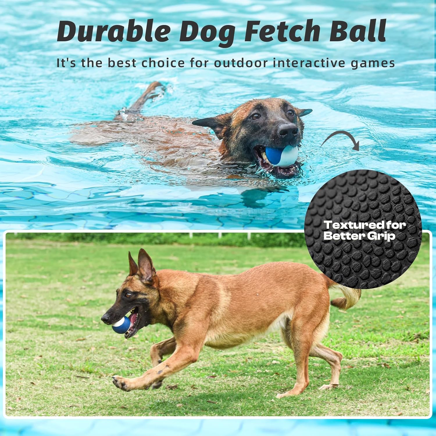 • High Bounce & Floating Fun – This dog ball toy is made from premium natural rubber that delivers a high bounce fetch ball on land and floats in water , making it perfect for outdoor fetch, beach trips, or pool play.