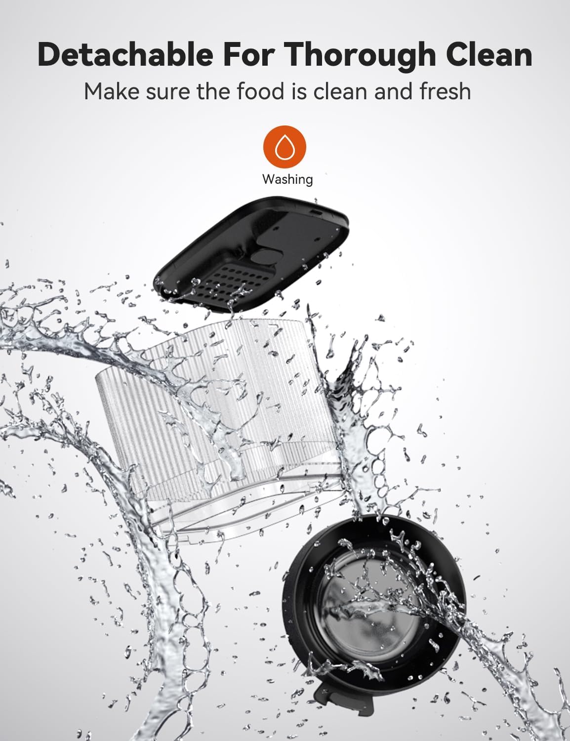 • Reliable Twist-Lock Storage: The automatic cat feeder comes with a unique twist-lock lid, ensuring the perfect amount of dry kibble (sized 0.07-0.47in / 2-12mm in diameter) is securely stored. This design preserves the crunchiness and flavor of the food while keeping it safe from curious paws.