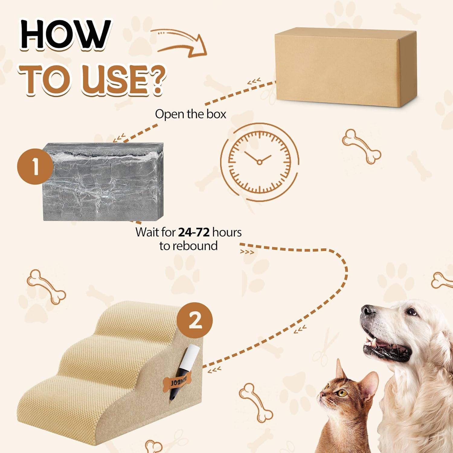 Romrol Dog Stairs Ramp for Beds Couches, Extra Wide Pet Steps with Durable Non-Slip Waterproof Fabric Cover, Dog Slope Stairs for Small Dogs and Cats or Pets Friendly, 3-Tiers, 13 Inch,Beige