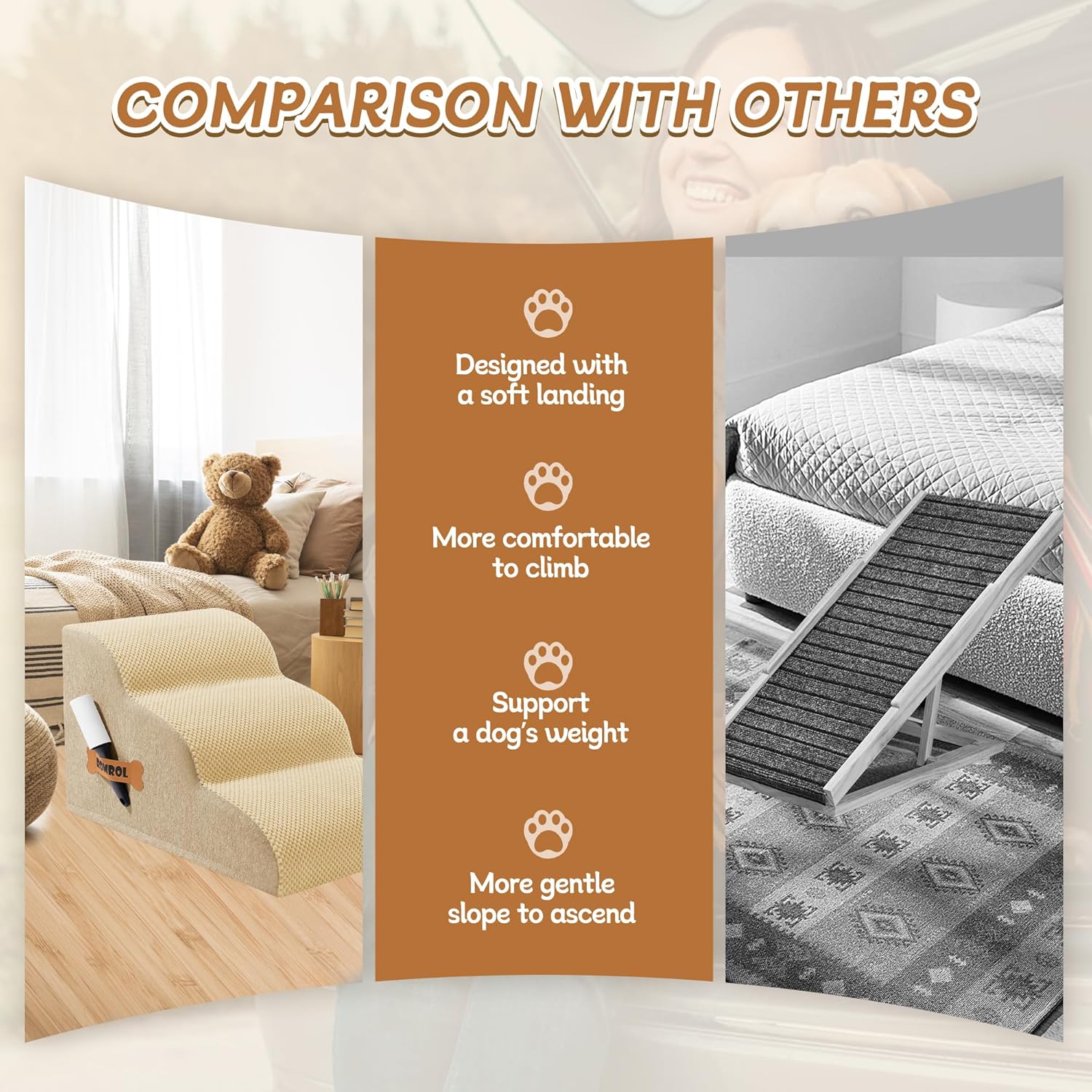 • 33D REBOUND HIGH-DENSITY FOAM: Our 33D foam delivers 63% faster rebound vs standard foam with enhanced weight capacity. Perfect for puppies, senior dogs, and pets recovering from surgery to access beds/couches safely. Dual-purpose as cat stairs for multi-pet households