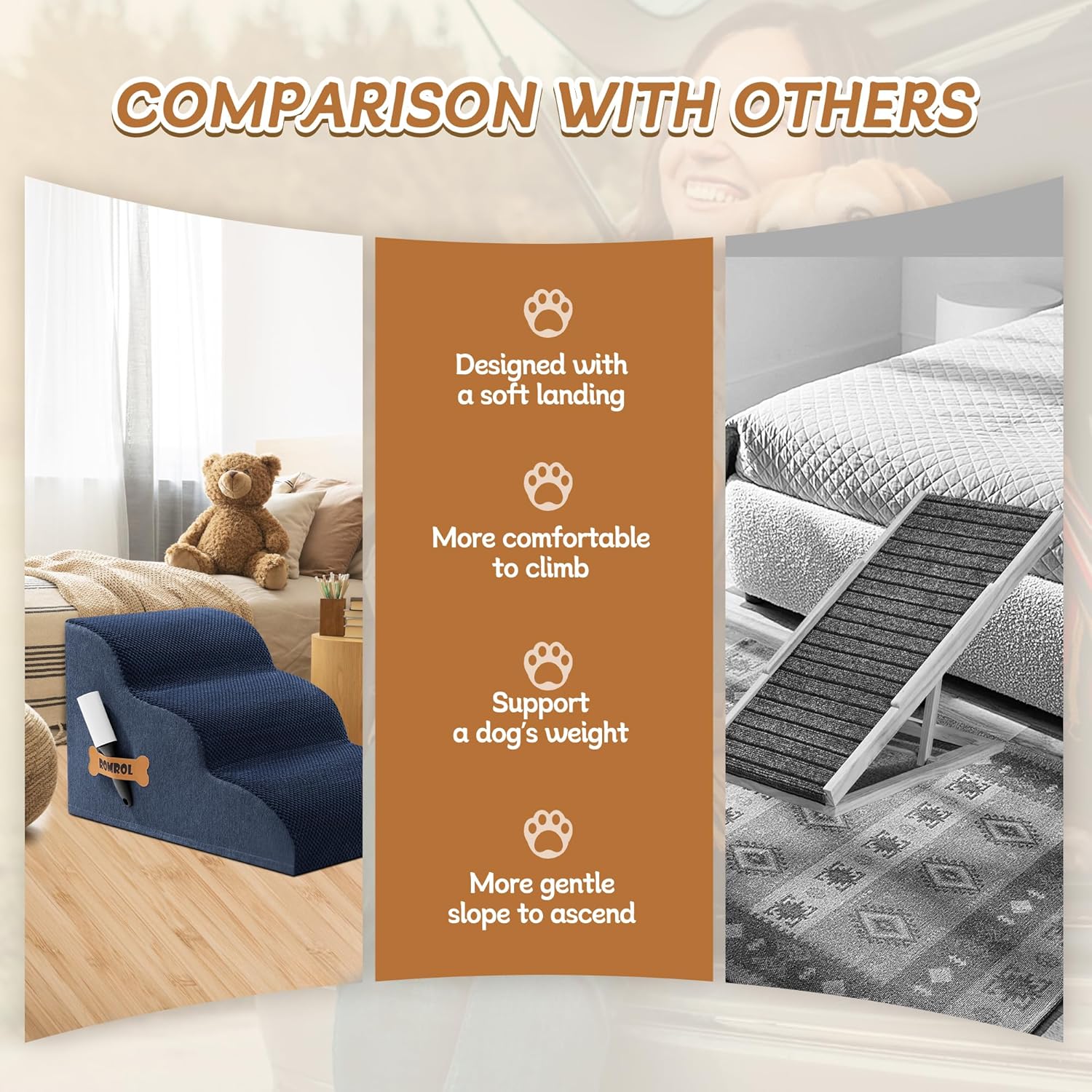 • 33D REBOUND HIGH-DENSITY FOAM: Our 33D foam delivers 63% faster rebound vs standard foam with enhanced weight capacity. Perfect for puppies, senior dogs, and pets recovering from surgery to access beds/couches safely. Dual-purpose as cat stairs for multi-pet households