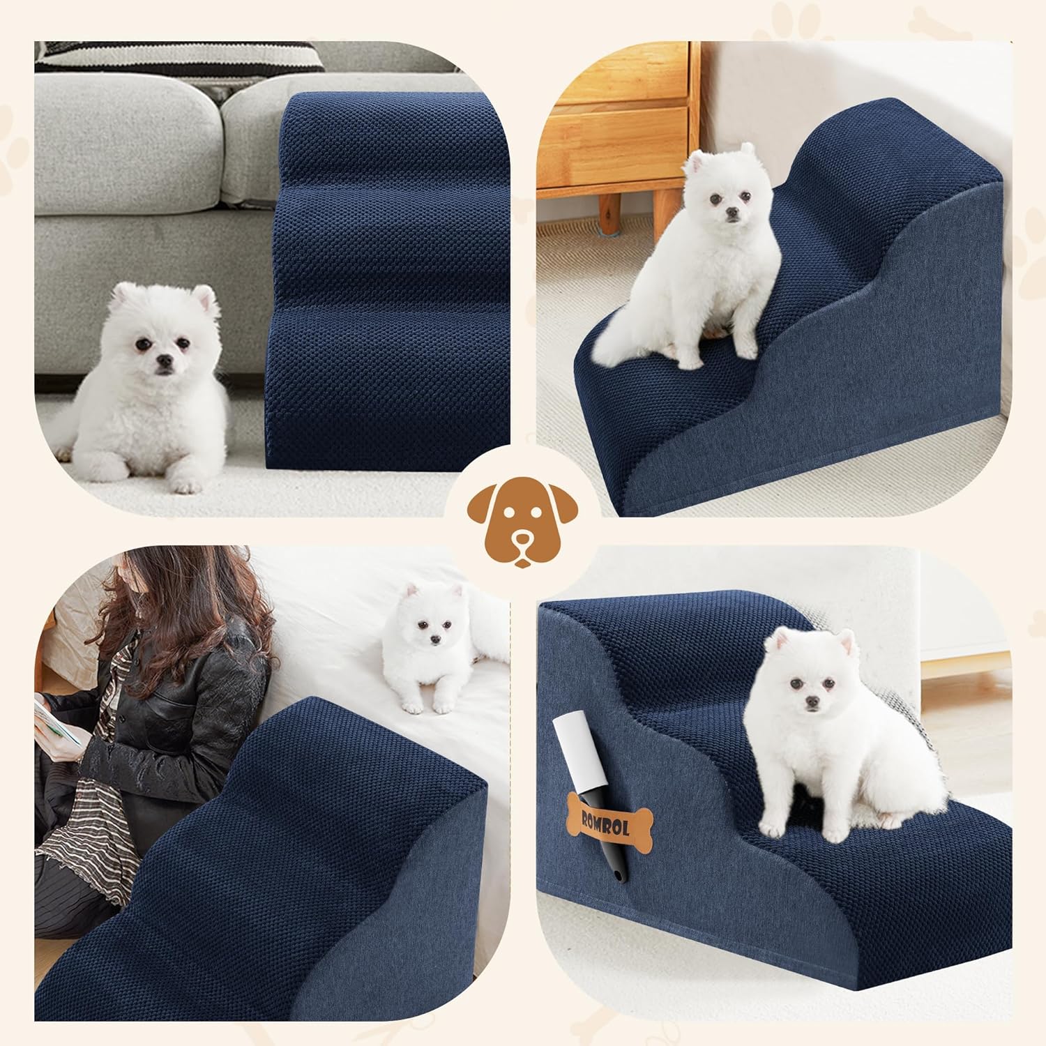 Romrol Dog Stairs Ramp for Beds Couches, Extra Wide Pet Steps with Durable Non-Slip Waterproof Fabric Cover, Dog Slope Stairs for Small Dogs and Cats or Pets Friendly, 3-Tiers, 13 Inch,Navy