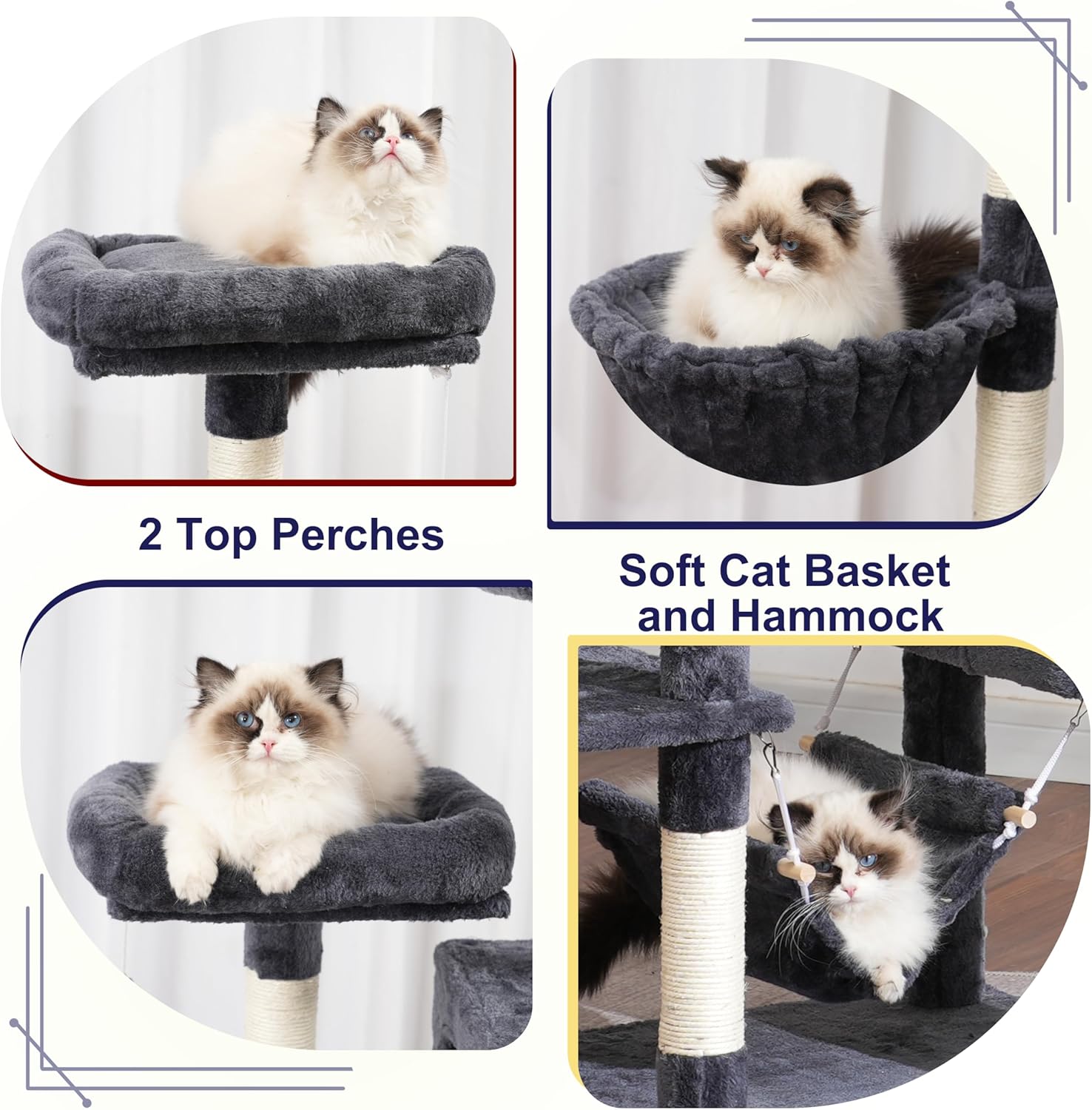 • Multi-level Tall Cat Tree: The design of two independent sisal scratching boards and the platform design for each layer make this cat tree have distinct layers and a reasonable structure. Even kittens and senior cats can climb it with ease.
