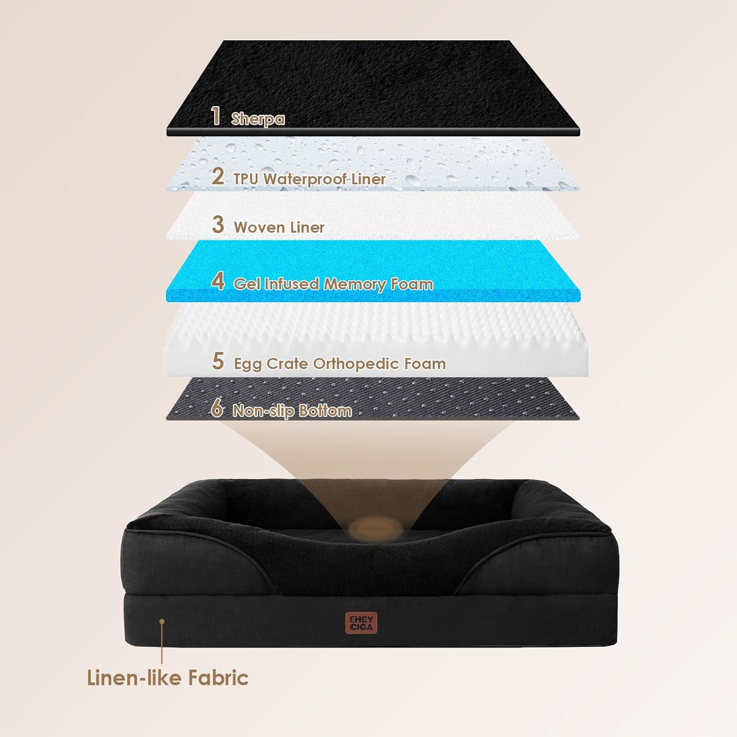 • WATERPROOF PROTECTION: A waterproof layer shields the plush fleece top from the sturdy base fabric, keeping the dog couch dry. Yet, the faux linen sides are not waterproof.