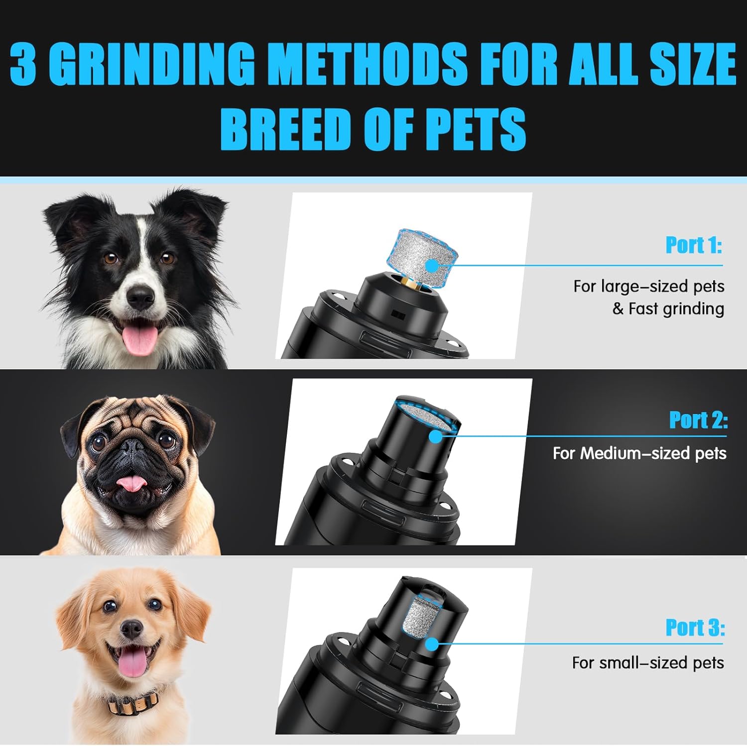 • Two Speeds & Three Grinding Ports: Effortlessly trim your pet's nails with two adjustable speeds (8,000-10,000 RPM) and three nail grinding ports. Perfect for pets of all sizes and nail hardness, this professional nail clipper set is a must-have for at-home pet grooming