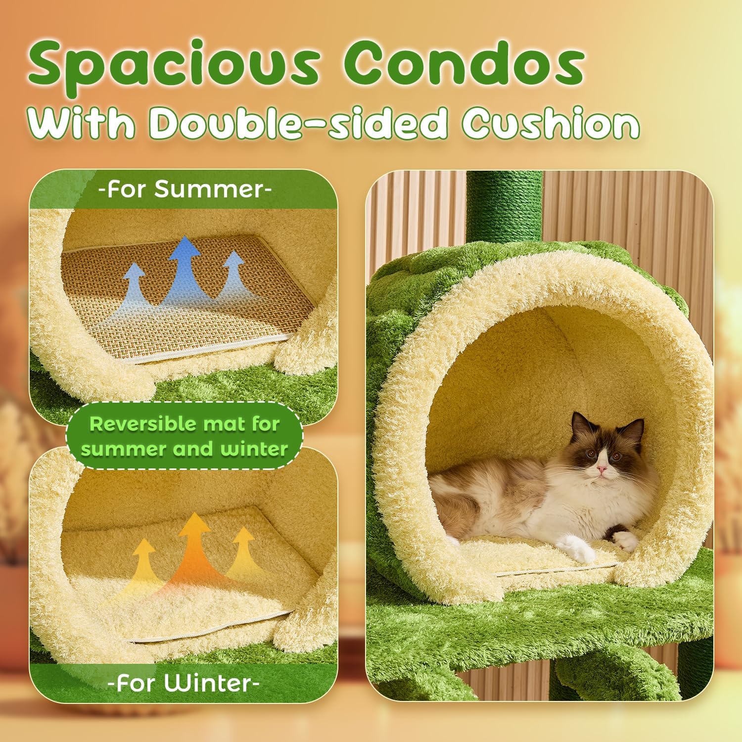 • 【Ideal for Multi-cat Families】The cat tree is an ideal choice for multi-pet households, accommodating 4-7 cats to rest or play together. It features 2 hidden cat food cave, 3 lotus perches, multiple play platforms, funny toy balls and large cat condo with double sided mat, providing ample space for your pets to enjoy climbing.