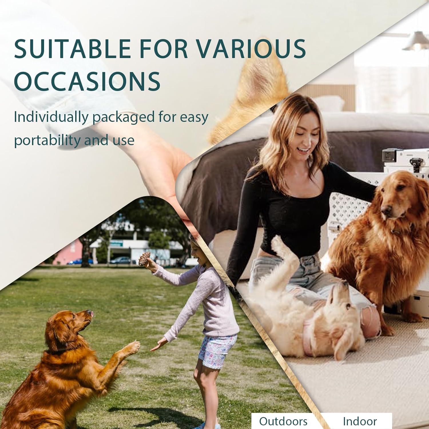 - ✨ INDIVIDUALLY WRAPPED FOR FRESHNESS & PORTABILITY: Each pets glove wipe is hygienically packaged to stay moist and ready-to-use. Ideal for travel, outdoor adventures, or emergency cleanups—portable and mess-free, keeping in your car, bag, or home for quick cleanups.