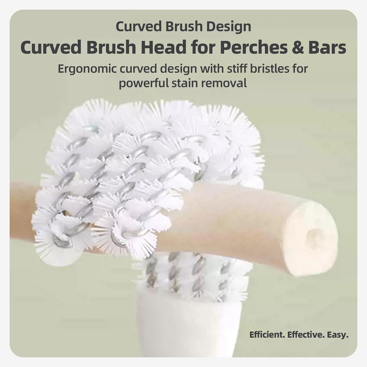 • Curved Brush Head for Precision Cleaning — Flexible angled bristles contour around perches, feeders, and cage bars to scrub stubborn droppings and food residue from tight spaces, ensuring thorough sanitation for parrots, cockatiels, and other pet birds
