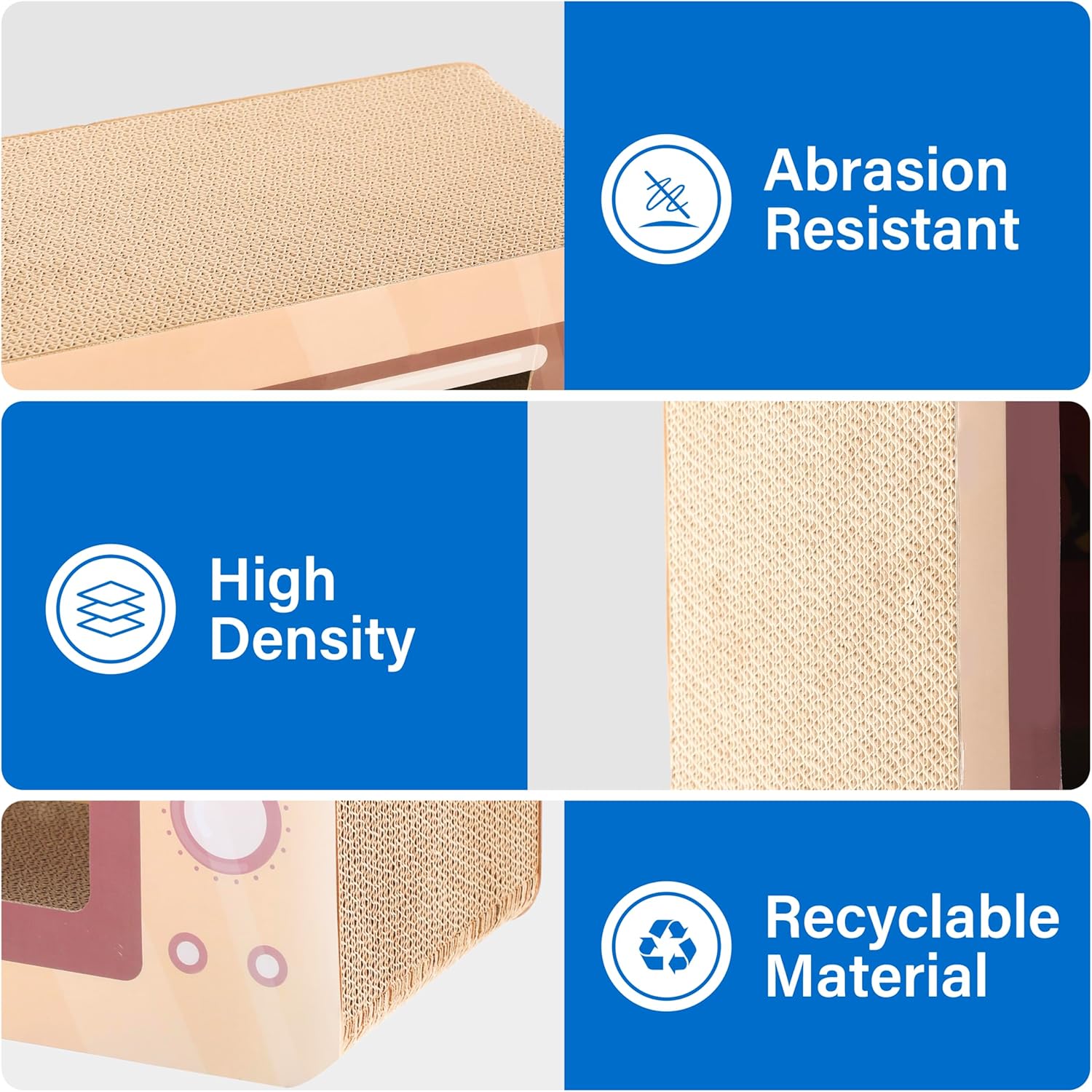 • Durable Protection: Made from thick, eco-friendly, and recyclable cardboard, our scratcher safeguards furniture from unwanted scratches, preserving your sofa and home items.