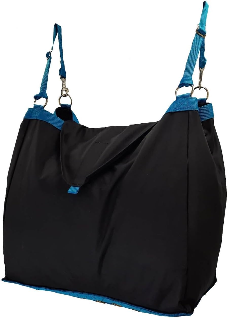 • CONVENIENT TOP-LOAD DESIGN - this hanging hay bag has an open top that is covered with a fold-over flap and secured with durable velcro. This design is both secure and easy to use: refilling your hay bag only takes seconds!