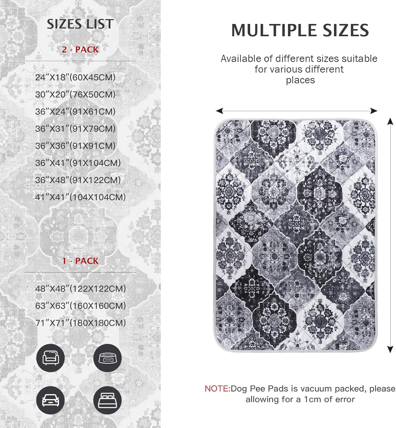 • 【Fashionable and Non-Slip】Our bohemian-print design adds a natural touch to the potty pads for dogs, giving your room a warm, casual vibe. And the non-slip bottom design makes the pet pee pads can achieve a certain fixed effect, you can put it anywhere you want. Soft and non-slip material makes it safer for dogs to use the pads.