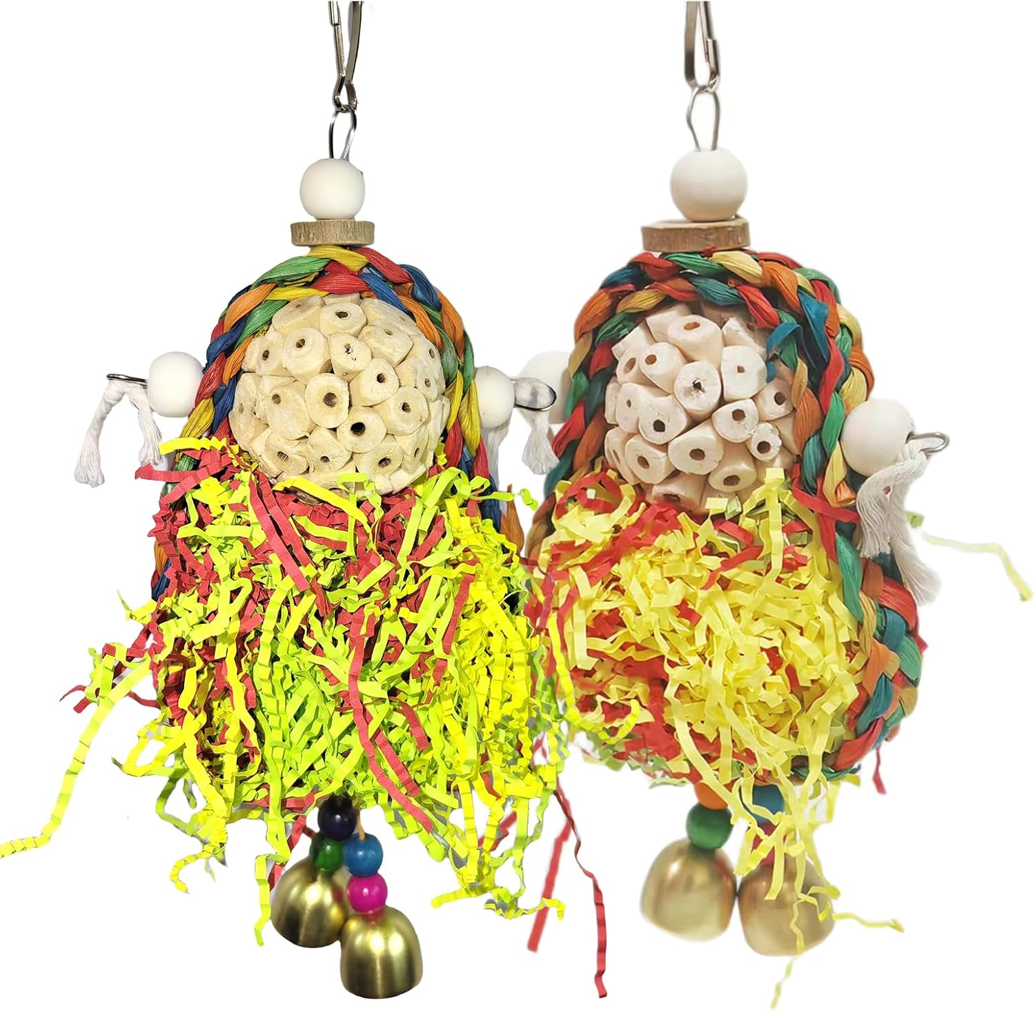 Parakeet Toys,Natural Sola Balls and Shredding Hanging Chewing Toy,2 PCS Small and Medium-Sized Parrot Toys, Bird Toys for Parrots,Cockatiels,Conures,Lovebird,Christmas Birds Toy