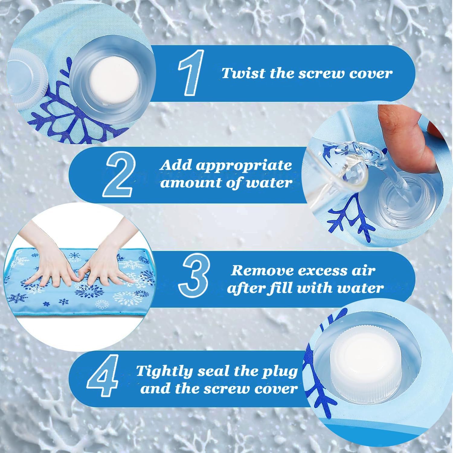 • SUMMER PET MAT: Simply fill the dog cooling mat, our Cooling Mat for Dogs provides immediate and long-lasting relief from heat for pets of all sizes. Simply place it in a shaded spot, and it cools down rapidly without electricity, perfect for keeping your furry friends comfortable during scorching summer days indoors or outdoors.