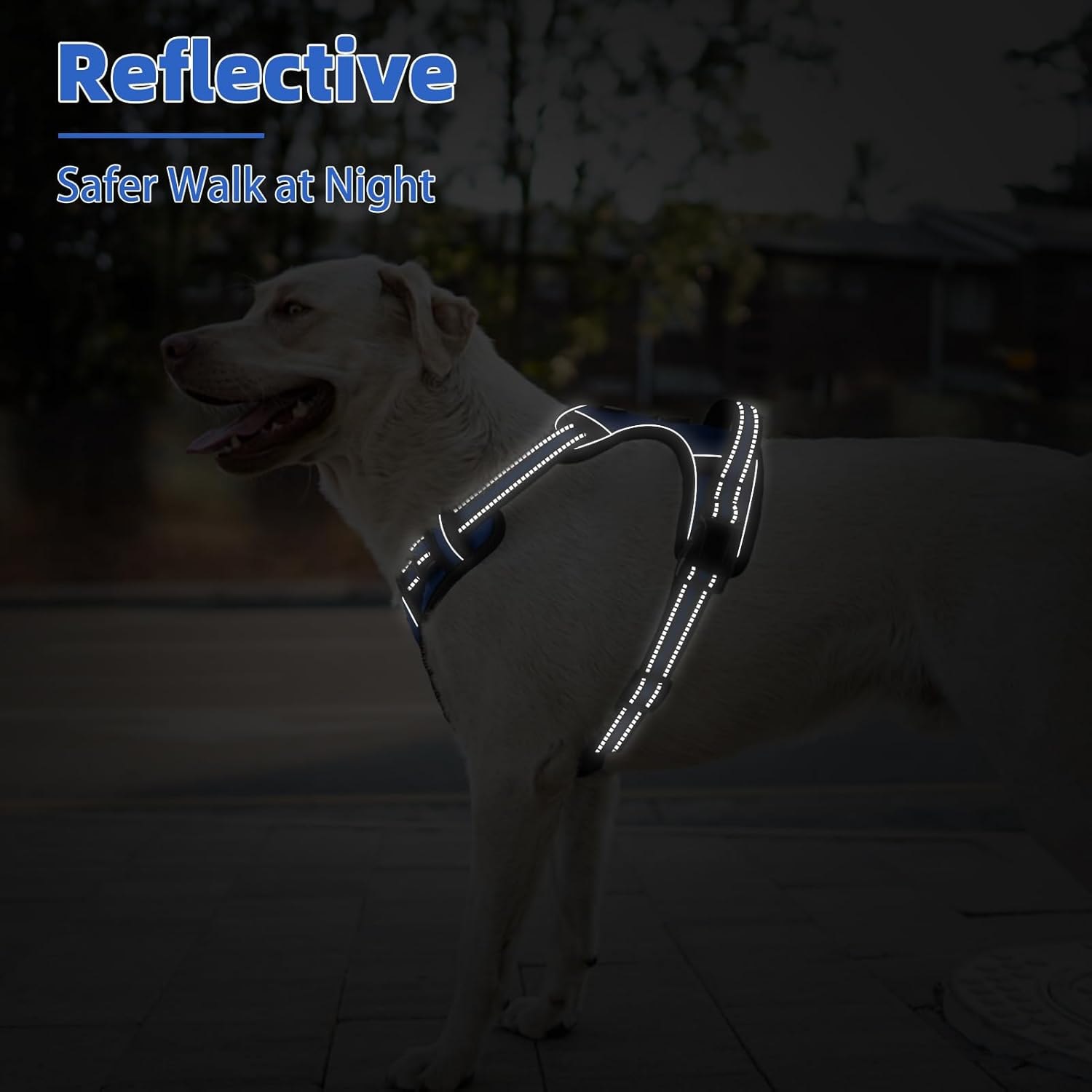 PUPTECK No Pull Dog Harness Medium Sized, Adjustable Reflective Dog Harness with Handle Easy Control, Comfortable Soft Padded Pet Vest Harness for Medium Dogs, Blue M