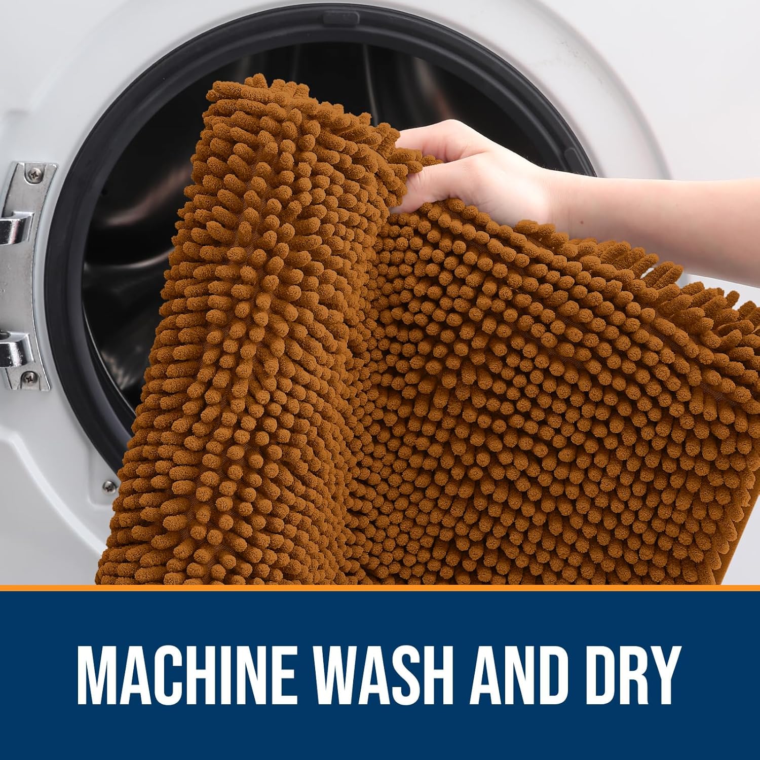 OLANLY Dog Door Mat for Muddy Paws 44x24, Absorbs Moisture and Dirt, Absorbent Non-Slip Washable Doormat, Quick Dry Chenille Mud Mat for Dogs, Entry Indoor Entryway Carpet for Inside Floor, Ochre