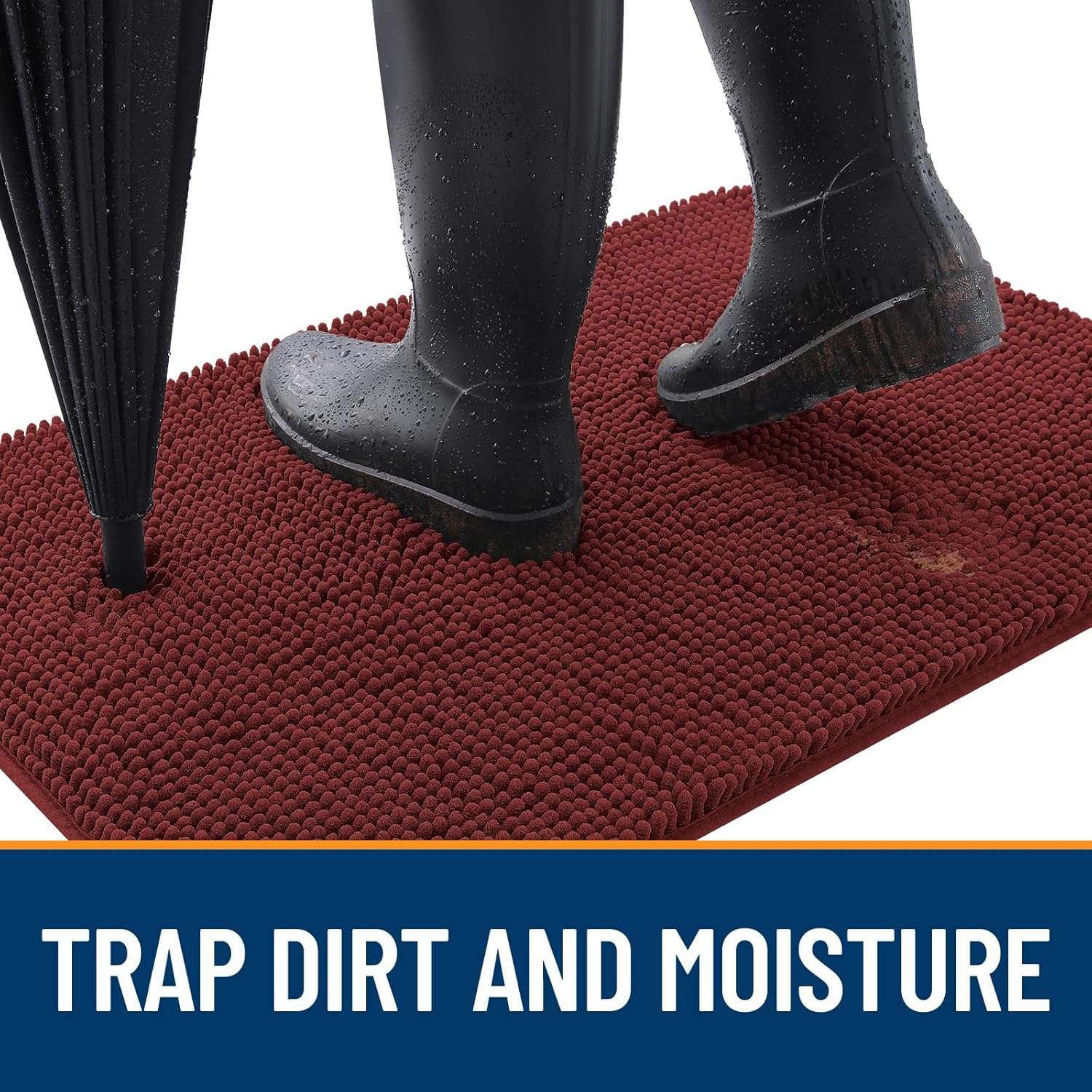 OLANLY Dog Door Mat for Muddy Paws 24x16, Absorbs Moisture and Dirt, Absorbent Non-Slip Washable Doormat, Quick Dry Chenille Mud Mat, Entry Indoor Entryway Carpet for Inside Floor, Caramel Russet