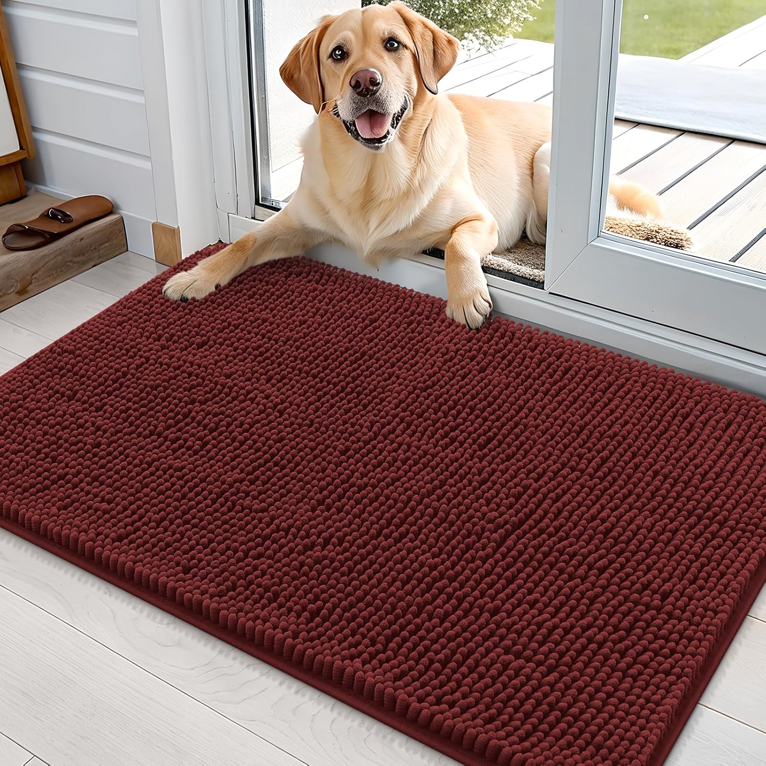 OLANLY Dog Door Mat for Muddy Paws 36x24, Absorbs Moisture and Dirt, Absorbent Non-Slip Washable Doormat, Quick Dry Chenille Mud Mat, Entry Indoor Entryway Carpet for Inside Floor, Caramel Russet