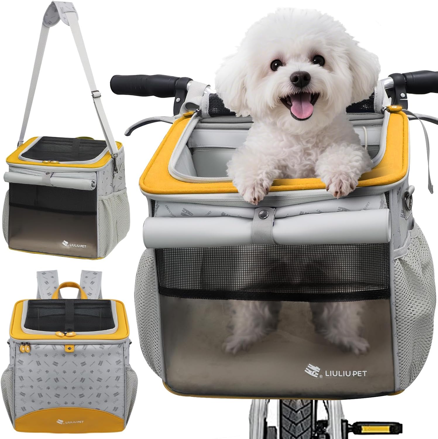 • LIULIUPET Cat and Dog Backpack Carrier, Breathable Cycling Pet Bag with Mesh Ventilation, Portable Outing Traveling Pet Bag with Top waterproof fabric for Small, Medium Cats, Small Dogs, Orange