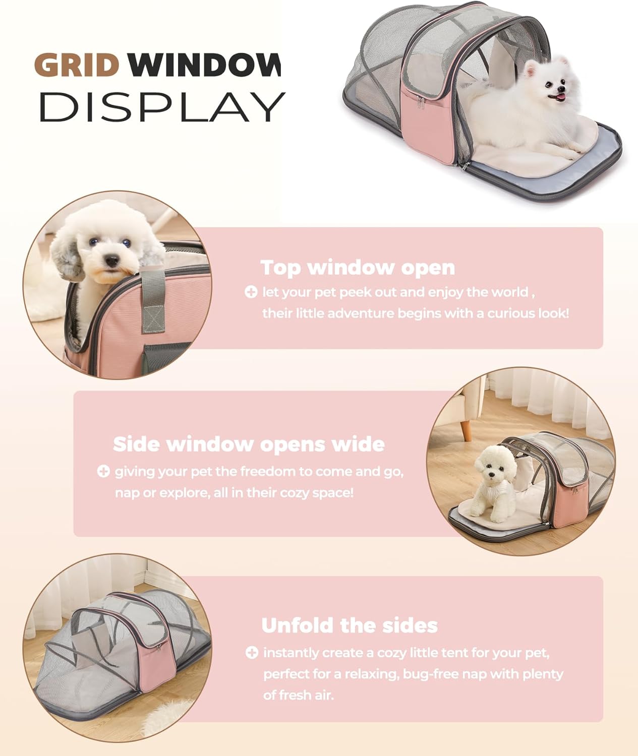 • Suitable for Small to Medium-Sized Pets: Designed for cats (e.g., Siamese, Ragdoll) and small dogs (e.g., Chihuahuas, Shih Tzus) under 25 lbs. The 32" expanded space ensures comfort for pets up to 12" tall, perfect for long trips or vet visits.