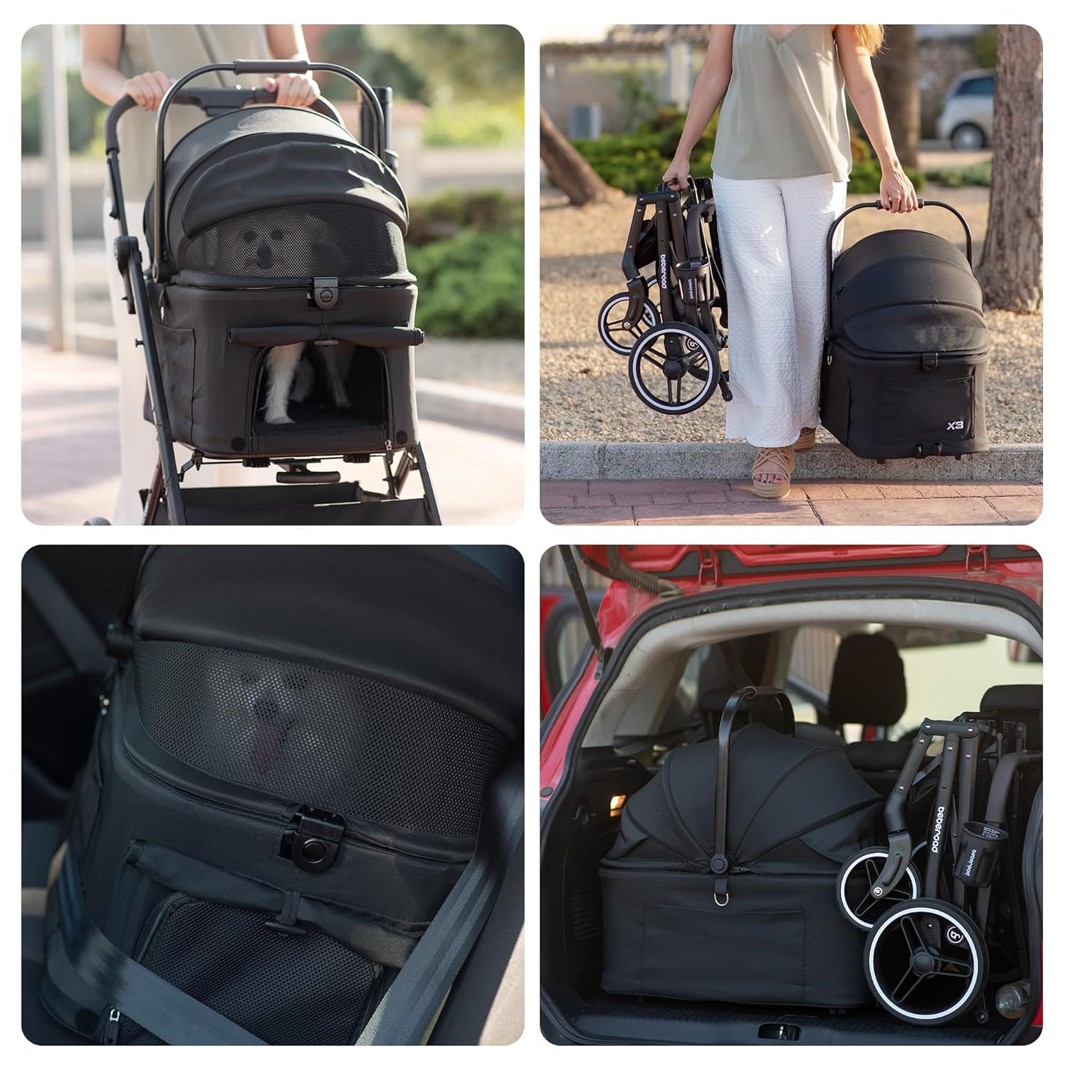 X3 2 in 1 Pet Stroller for Medium or Two Small Dogs & Cats 4 Wheels Lightweight Foldable Carrier Dog Stroller with Waterproof Weather Cover Cup Holder,Storage Basket(Black)
