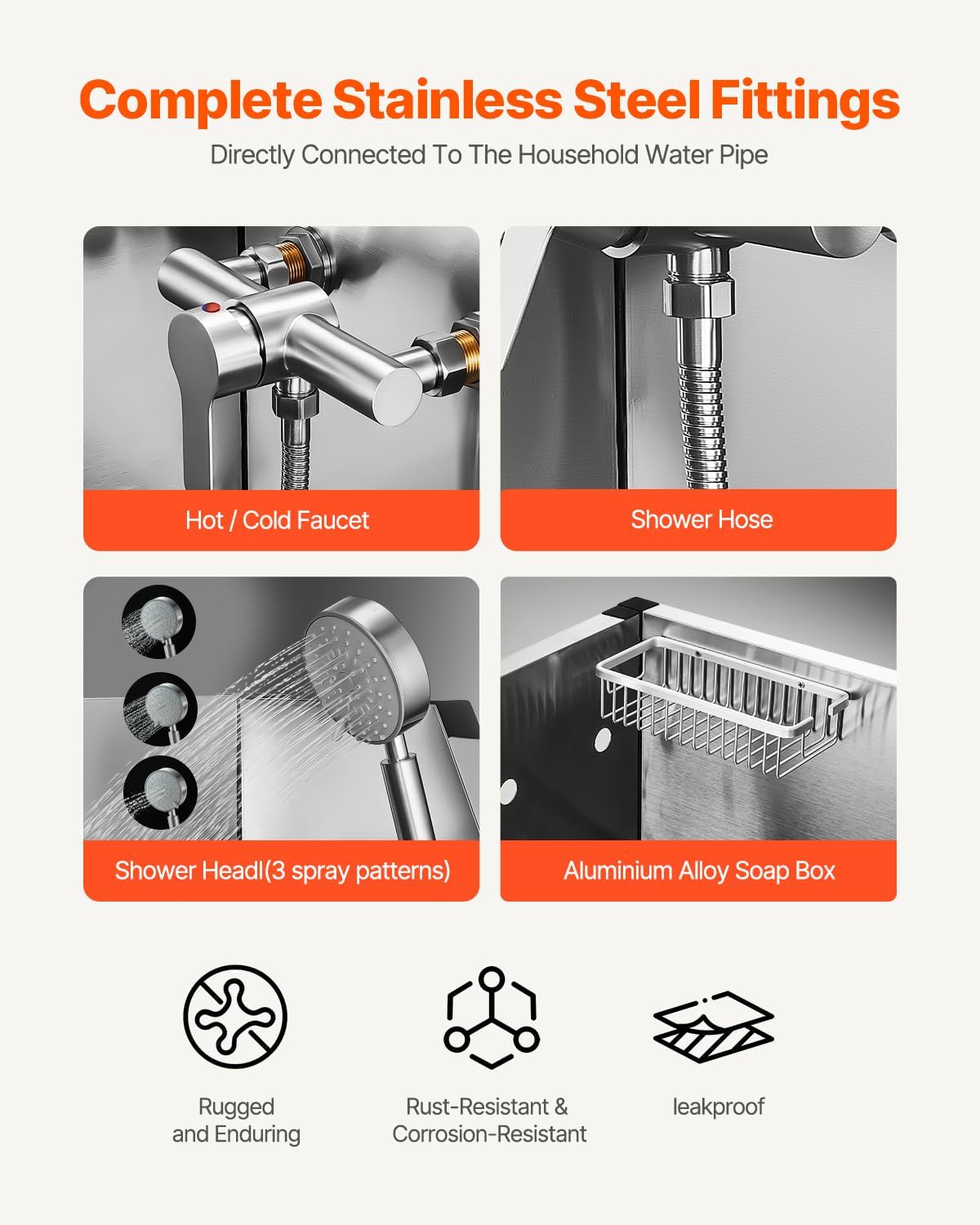 • Complete Accessories: This dog wash station comes with a showerhead, faucet, and a direct connection to a home hose, built for durability. It also includes a cleaning cloth, squeegee, brush, and gloves, ensuring your pet enjoys the full bathing experience