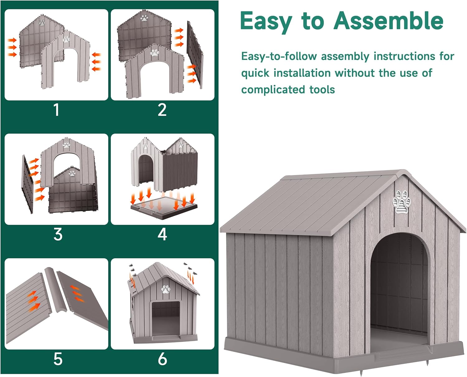 • Easy to Assemble: Our dog house design is straightforward and does not require specialized tools or technical knowledge, you can assemble the dog house in no time and let your dog enjoy his new home.