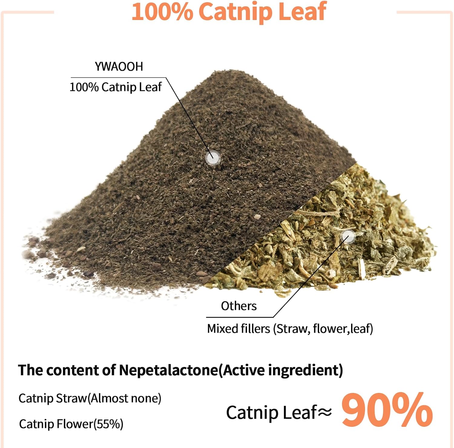• 🌿 Low-Temp Processed for Max Potency: Unlike most catnips on the market, YWAOOH uses advanced low-temperature extraction and micro-grinding to retain more nepetalactone, the active compound cats love. This results in stronger, longer-lasting stimulation with less product.