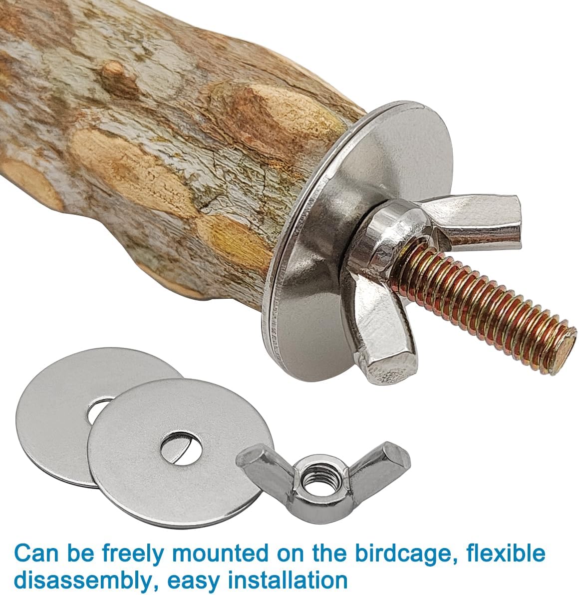 • Easy installation: These bird cage perches are equipped with a metal butterfly nut and built-in bolt, making it easy to securely fix them in the birdcage without the need for other tools, and can be placed anywhere in the cage.