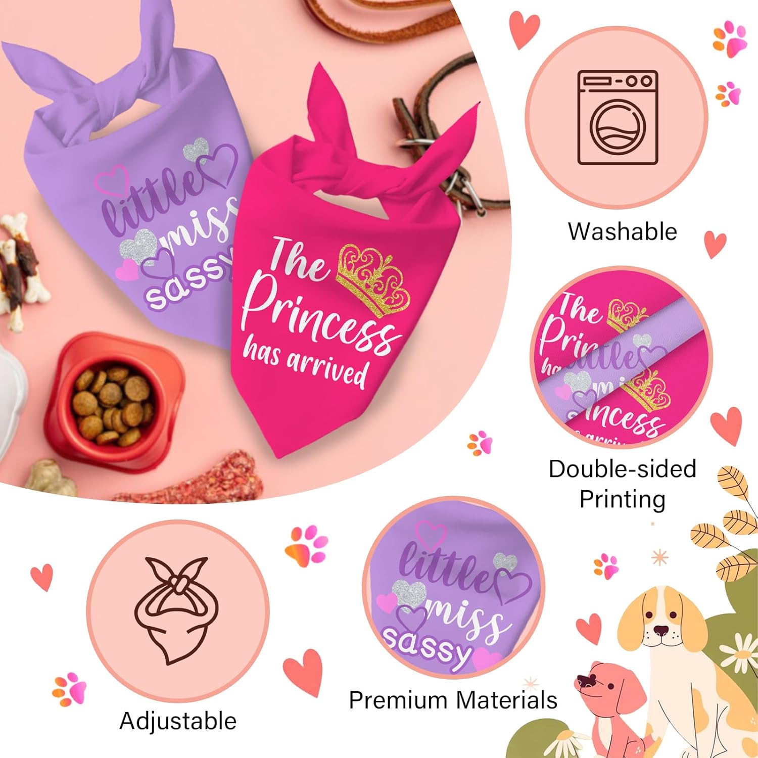 Puppy Bandana 2 Pcs, Princess Sassy Pet Scarf Gifts for Dog Girl, Pink Purple Cute Puppy Bandana for Medium to Large Pet Dogs On Birthday, Cute Girl Dog Scarf Kerchief, Gifts for Dogs Lovers