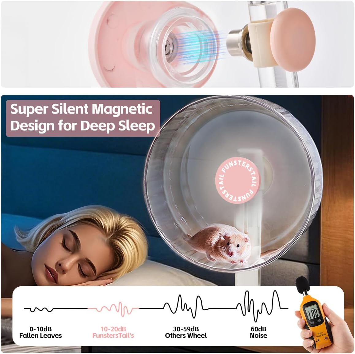 • Super Silent Night Runs: Our magnetic axle design eliminates friction noise, making it ideal for late-night use. Perfect for light-sleeping owners or cage setups—your dwarf hamster or hedgehog can run freely without disturbing your sleep