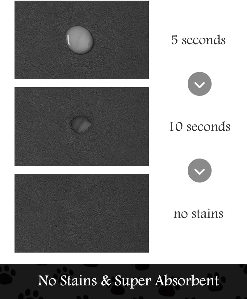 • Super Absorbent & Durable: Perfect pet supplies.This pet food mat can prevent liquid from overflowing. Super absorbent and quick-drying ability to avoid wetting pet paws even for messy drinkers. Sturdy dog & cat food bowl mat cannot be torn easily and avoid eating by mistake. Keep the pet's eating environment tidy and clean.