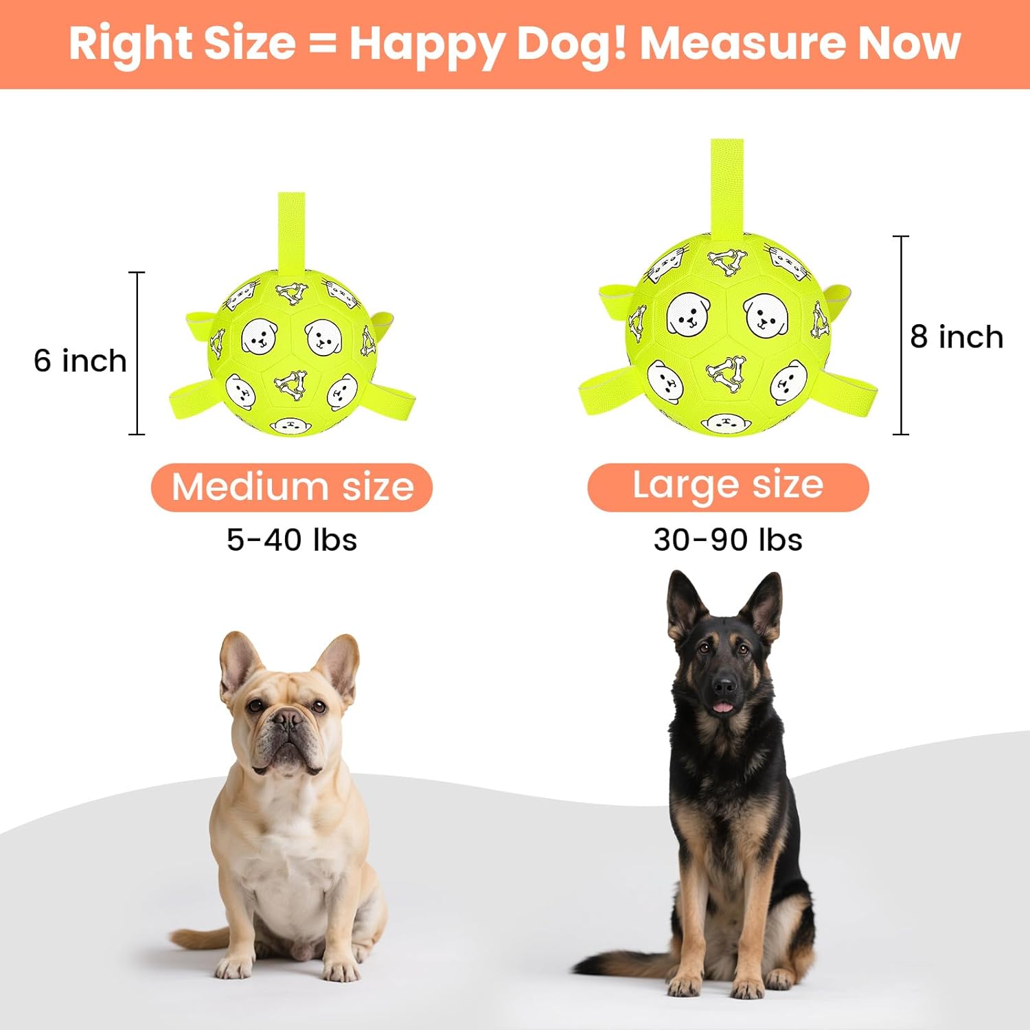 Dog Toys, Durable Dog Soccer Ball with Straps, Interactive Dog Toys, Water Fetch Ball for Tug of War, Puppy Toys for Indoor/Outdoor – Fun Dog Birthday Gift for Small & Medium Dogs, 6 Inch