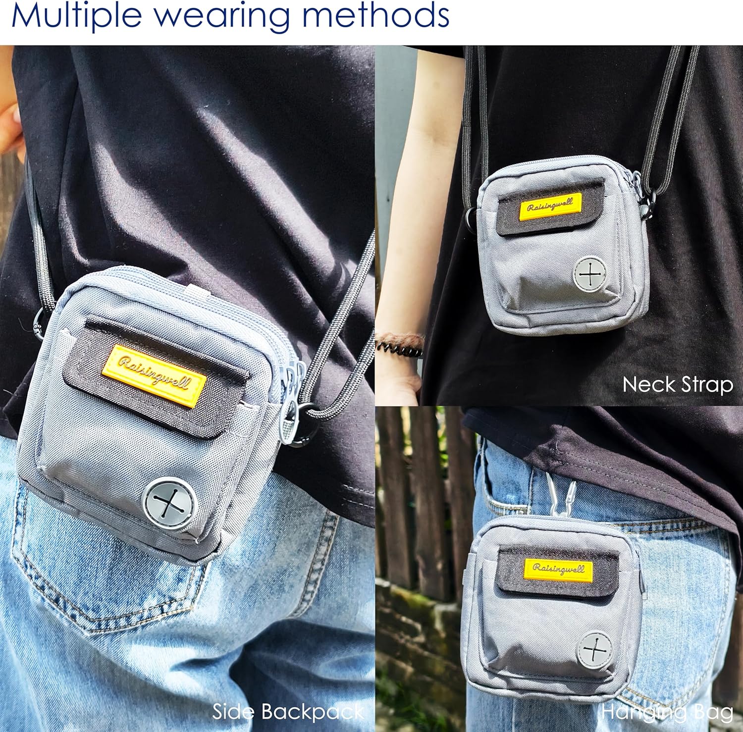 • 3、Durable Tech Material: Raisingwell's dog treat training pouchis made from durable, washable, and non-toxic fabric. Notably, its waterproof lining solves the problem of difficult-to-clean interiors of training bags.