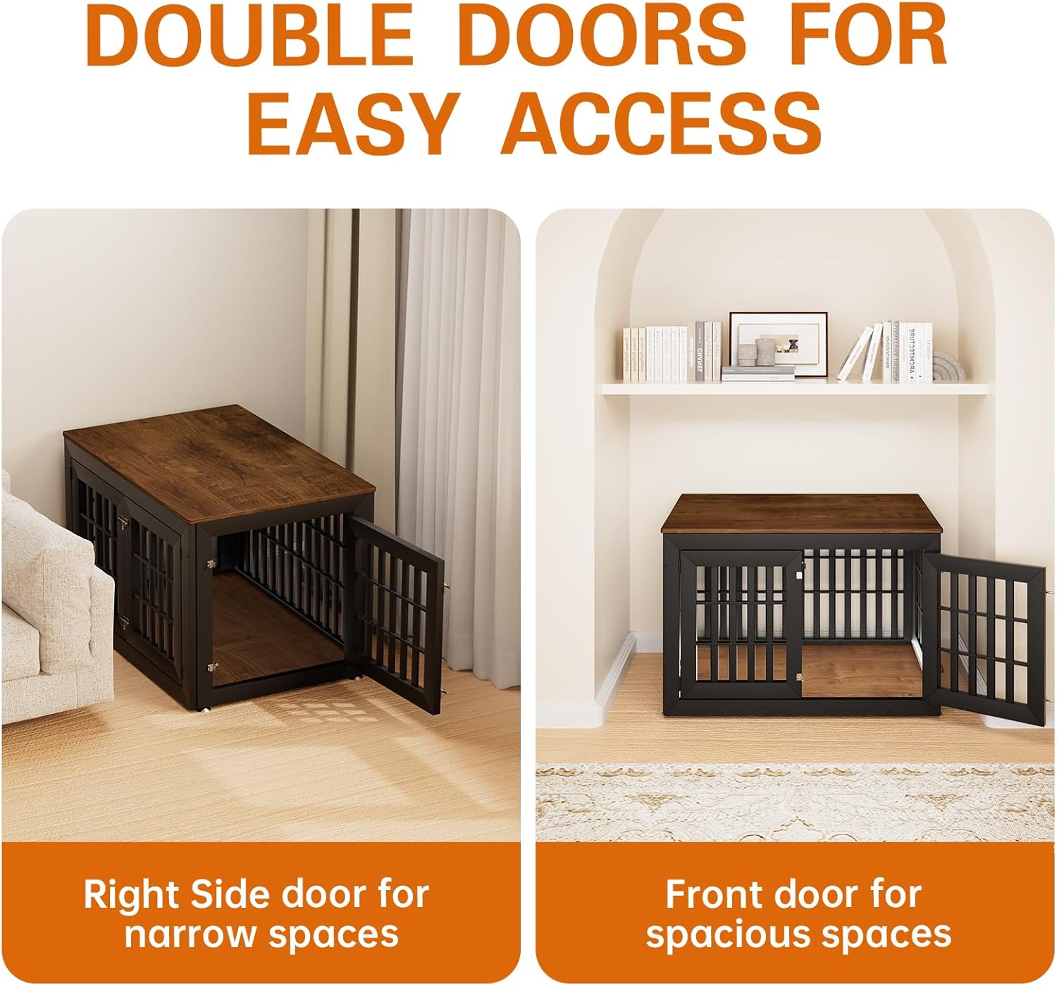 • 【Double Doors Design】The dog kennel furniture has a front door and a side door, your pet will go in and out easily with double doors. The double-doors design can adapt to more different space environments. You can decide whether to open the front door or the side door according to your needs.