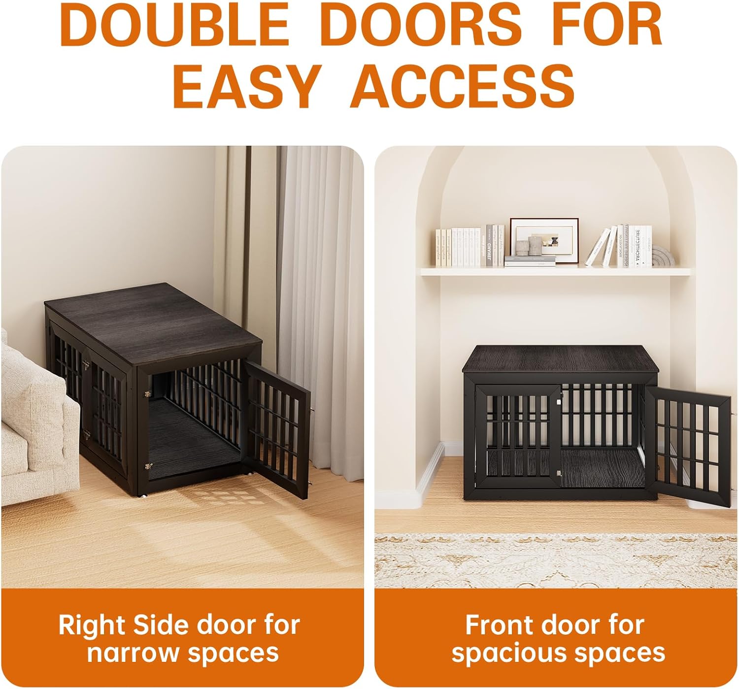 • 【Double Doors Design】The dog kennel furniture has a front door and a side door, your pet will go in and out easily with double doors. The double-doors design can adapt to more different space environments. You can decide whether to open the front door or the side door according to your needs
