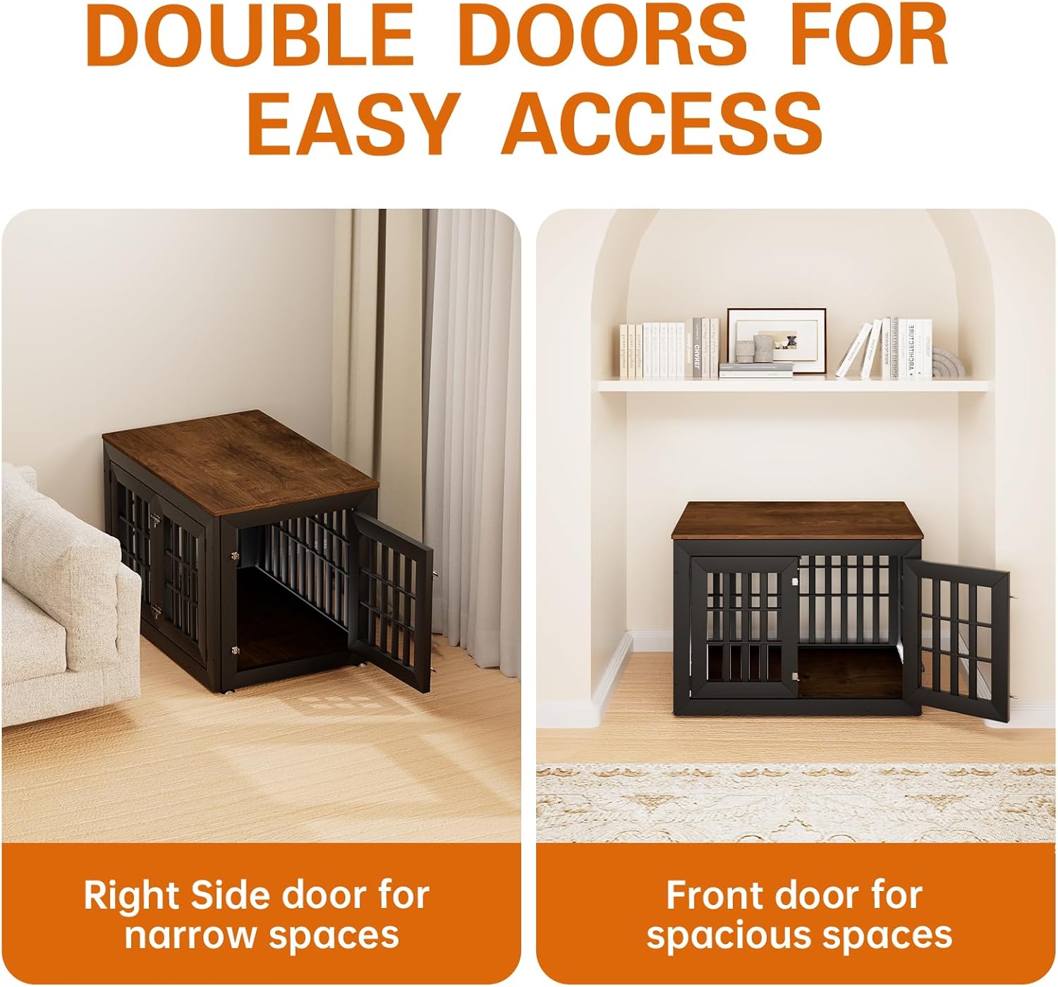 • 【Double Doors Design】The dog kennel furniture has a front door and a side door, your pet will go in and out easily with double doors. The double-doors design can adapt to more different space environments. You can decide whether to open the front door or the side door according to your needs.