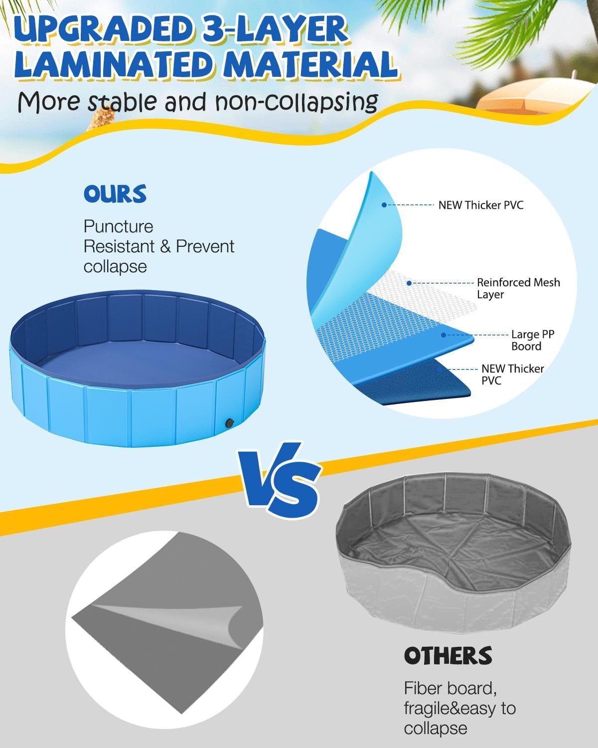• Warm Tip:To protect the dog pool from scratches, trim your dog’s nails before use—ideal for excited pups who love to dig and splash.