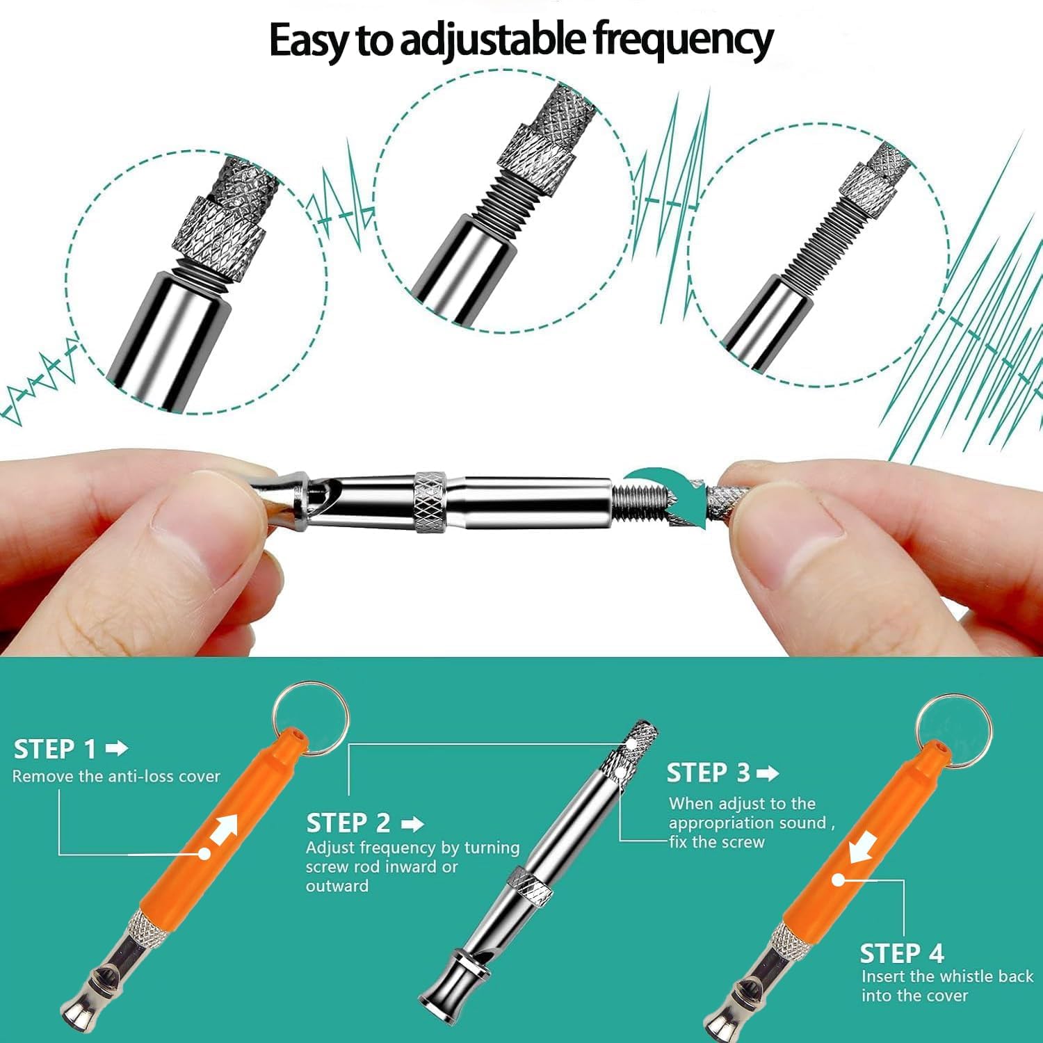 • Adjustable Frequency:Our dog training whistle has a nut and screw that can be turned to adjust the frequency.Pay attention to your dog's response to each frequency,without damaging their hearing.