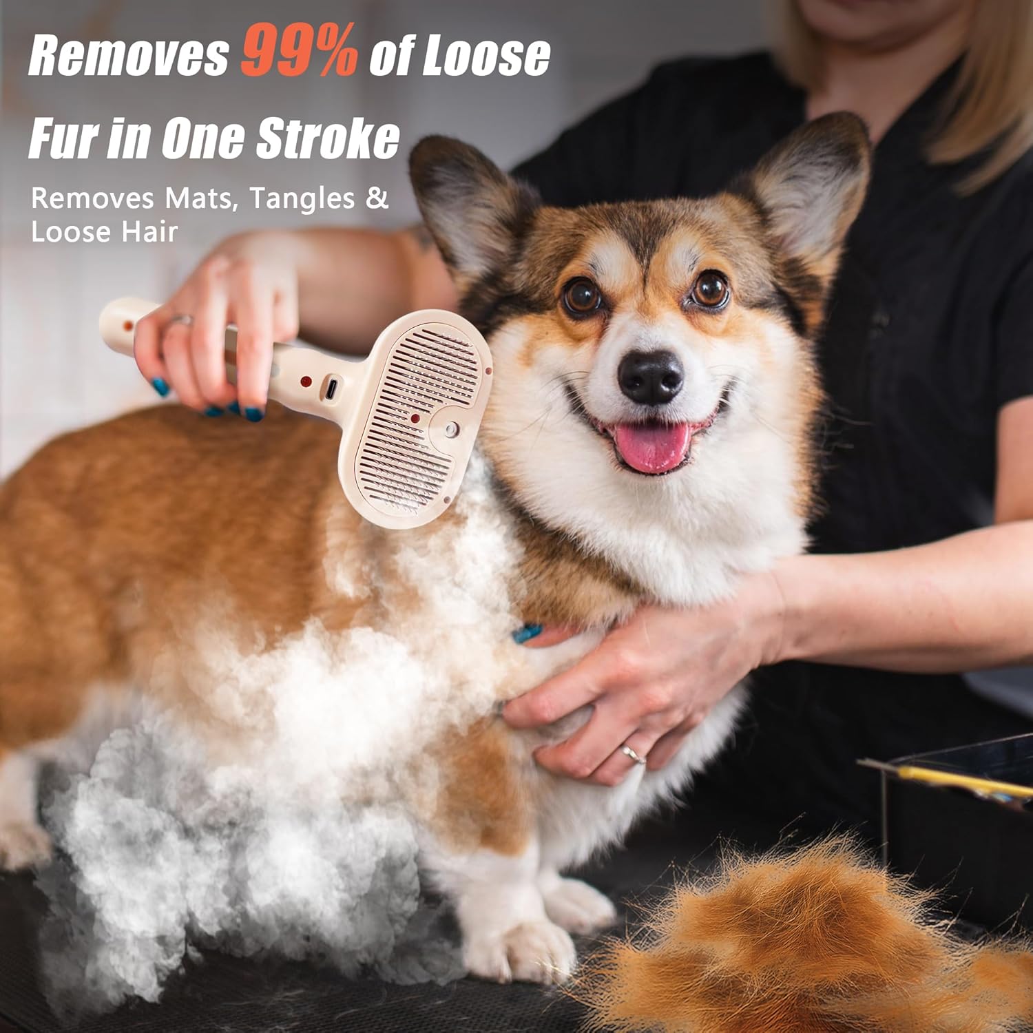 Dog Steam Brush 3 in 1 Cat Brush with Steam and Release Button Grooming Tool for Indoor Pets Dogs Hair Removal Shedding Water for Small Animals Long Short Haired(PINK)